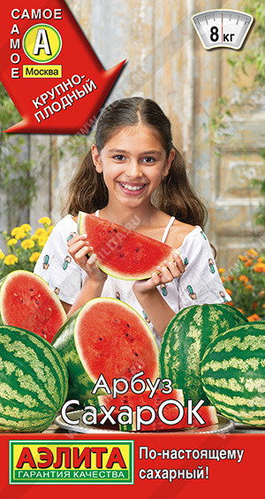 Крупноплодный среднеплетистый сорт, по-настоящему сахарный! Насладиться первым спелым арбузом можно через 80-105 дней после появления всходов. Плоды овальные, с классическим полосатым рисунком коры, массой 6-8 кг. Мякоть темно-красная, плотная, сочная, содержание сахара превышает 8 %. Сорт устойчив к фузариозу. Отличается великолепными вкусовыми и товарными качествами. Подходит для выращивания в открытом грунте и теплицах. Для теплиц посев: на рассаду 5-10.IV, высадка 15-25.V. Растения формируют: главный стебель подвязывают к шпалере, боковые побеги ослепляют до высоты 50 см. Следующие боковые побеги прищипывают после женского цветка. Рекомендуется ручное опыление. На растении оставляют 3-4 плода, помещая их в сетки.