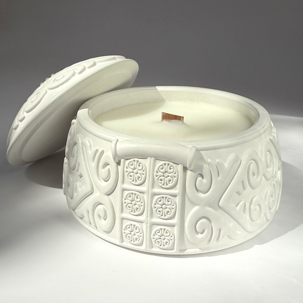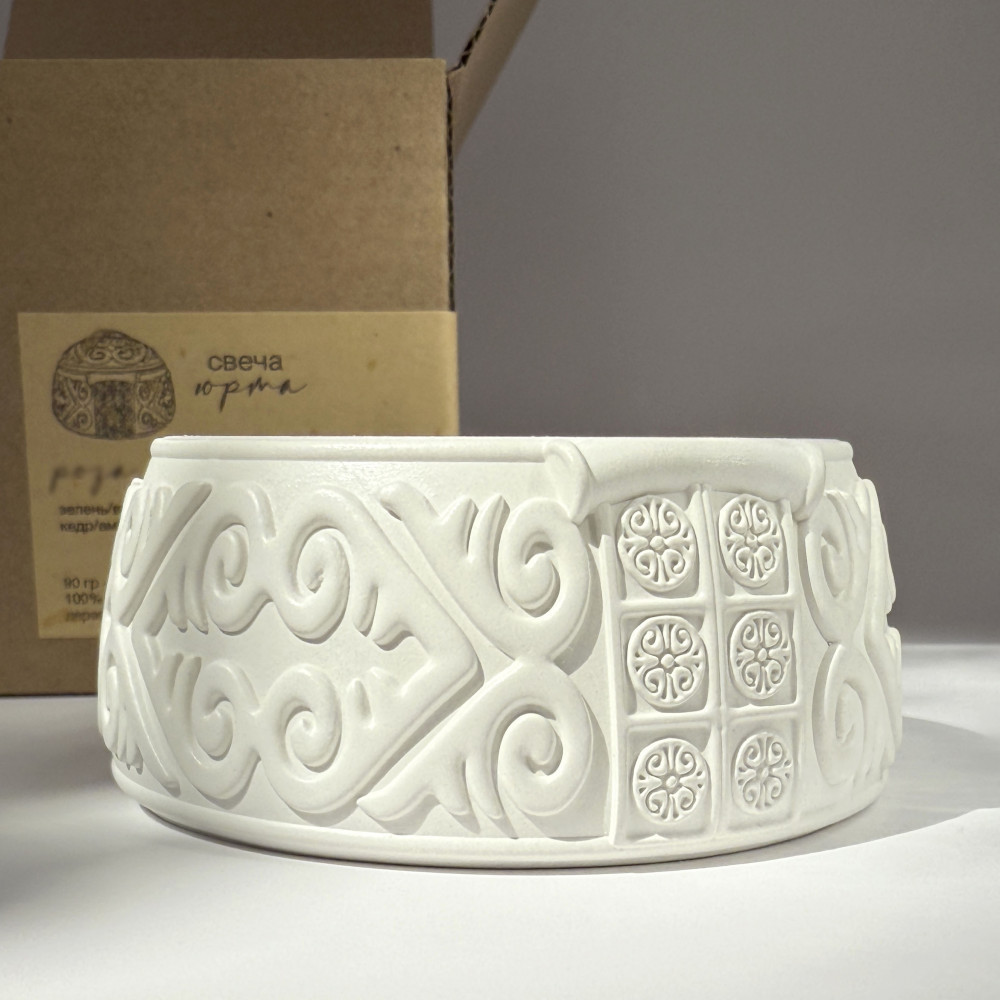 После того как свеча прогорит, юрта превращается в стильное кашпо или шкатулку для украшений, аксессуаров и памятных мелочей. Аутентичная ароматическая свеча в форме юрты с ароматом ванильное облако |