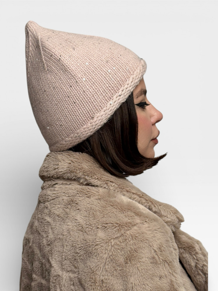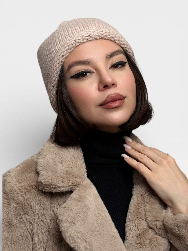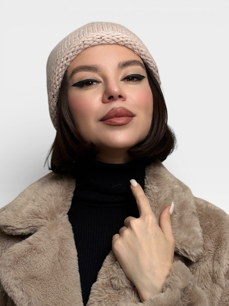 Шапка женская зимняя на флисе с мини-пайетками