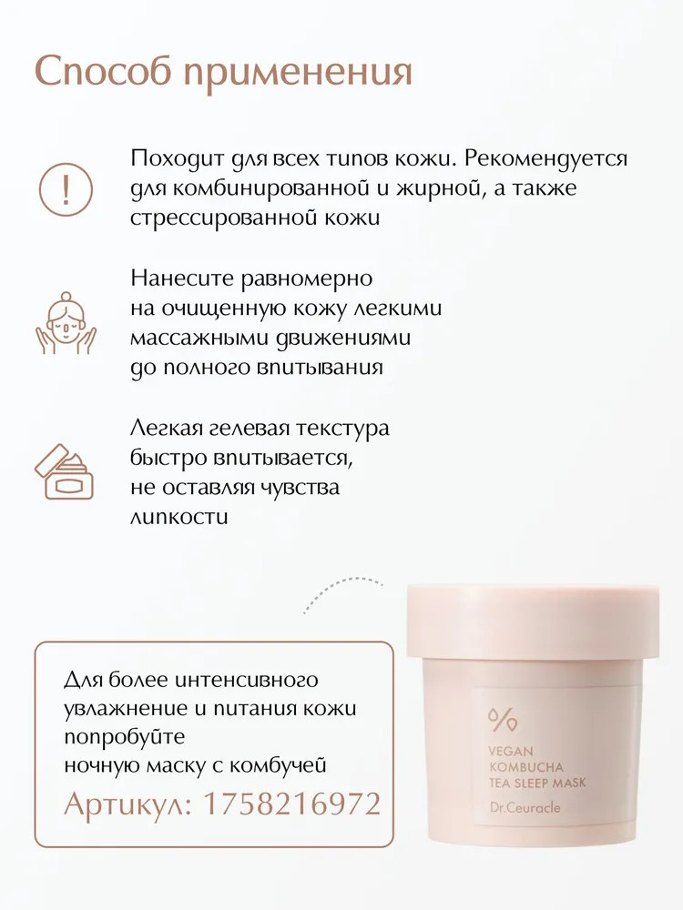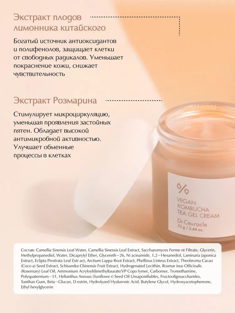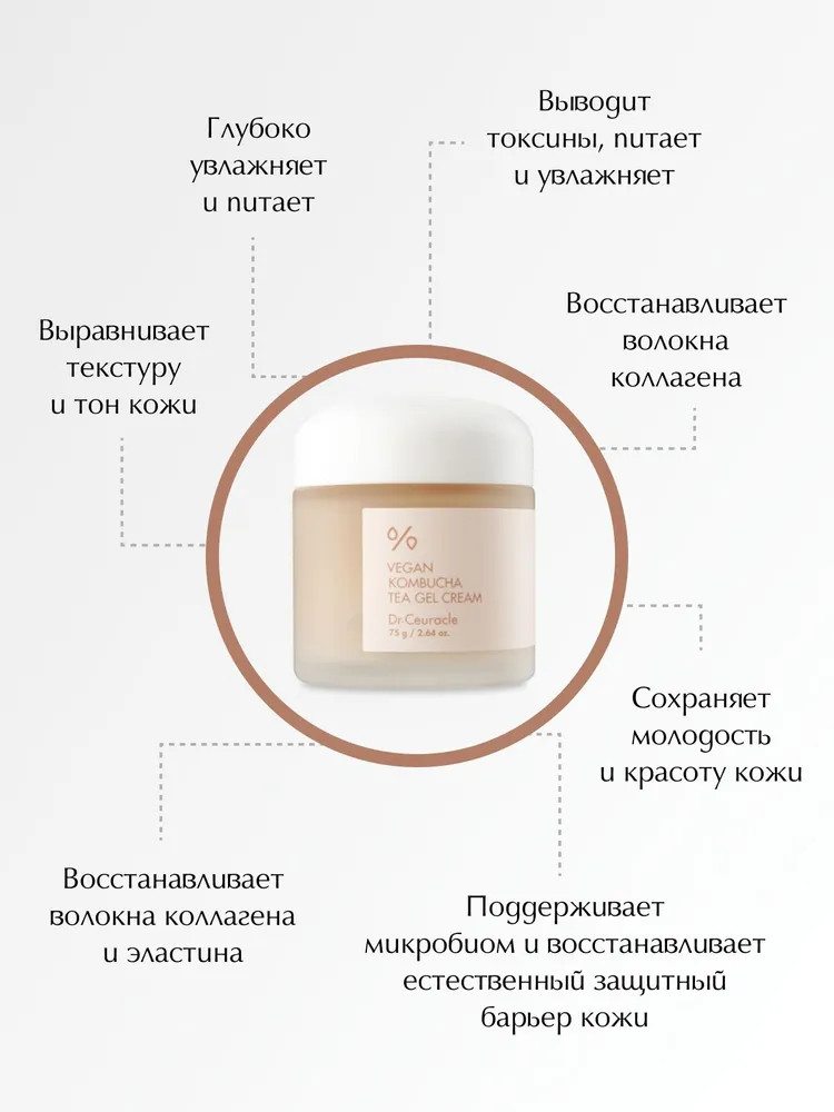 Dr.Ceuracle Крем-гель для лица с чаем комбуча «Vegan Kombucha Tea Cream Gel»