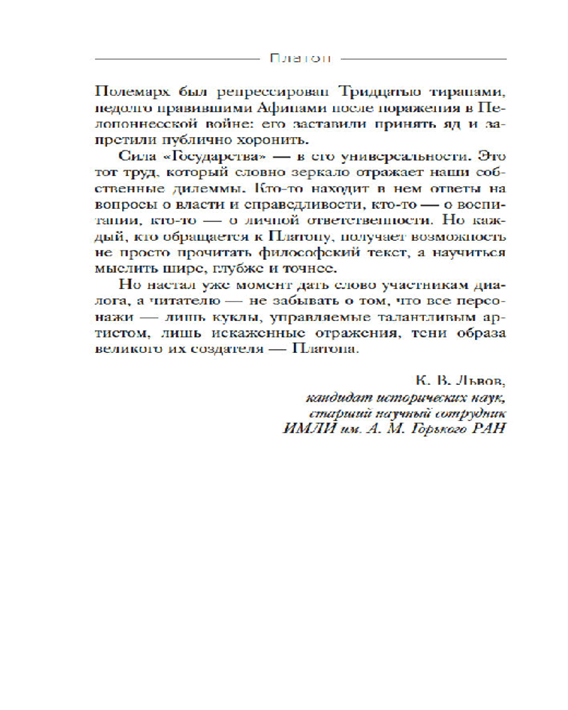 Философия Платона остается актуальной и необходимой каждому, кто задумывается о судьбах цивилизации, своем месте в обществе и мечтает создать лучший мир для будущих поколений.