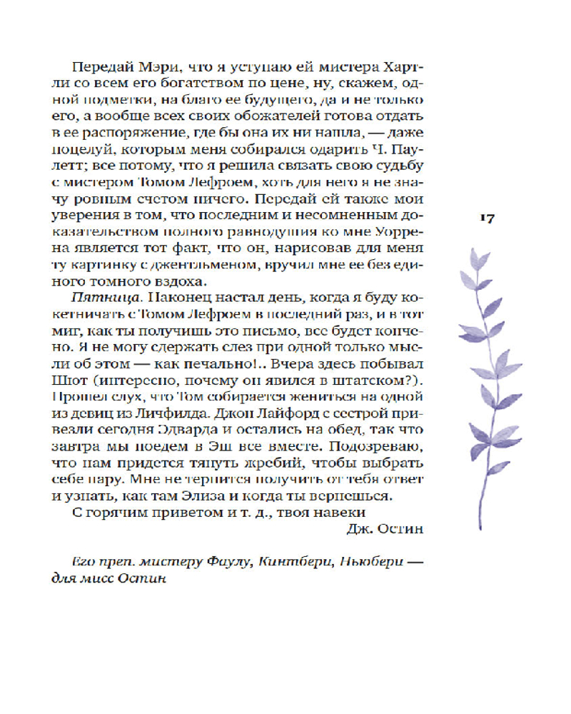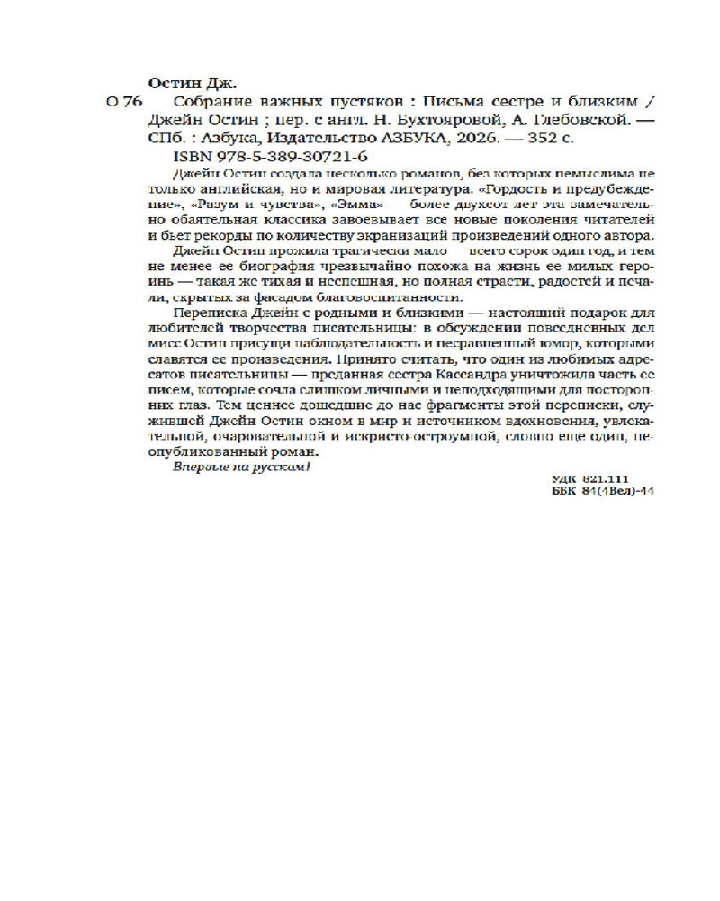 💳 Оплатить за товар можно при получении 🇰🇿 Есть бесплатная доставка по Казахстану от 1 дня 🎁 Копите бонусы с каждой покупки Серия: Бестселлеры Non-Fiction Джейн Остин создала несколько романов, без которых немыслима не только английская, но и мировая литература. «Гордость и предубеждение», «Разум и чувства», «Эмма» — более двухсот лет эта замечательно обаятельная классика завоевывает все новые поколения читателей и бьет рекорды по количеству экранизаций произведений одного автора. Джейн Остин прожила трагически мало — всего сорок один год, и тем не менее ее биография, чрезвычайно похожая на тихую и неспешную, но полную скрытых за фасадом благовоспитанности страсти, радостей и горестей жизнь ее милых героинь, продолжает интриговать многочисленных исследователей. |