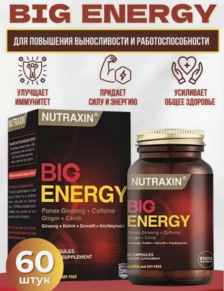 Nutraxin Энергетические капсулы для повышения выносливости и работоспособности «Big Energy»-7% +69