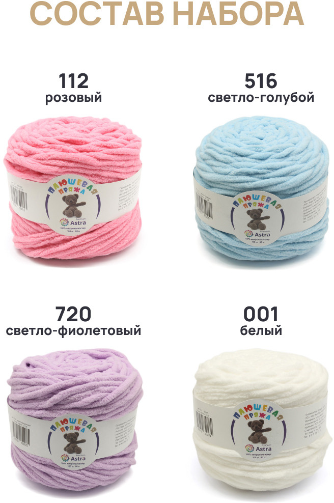 Набор пряжи «Плюшевая», цвет Ассорти №1 | Astra Premium
