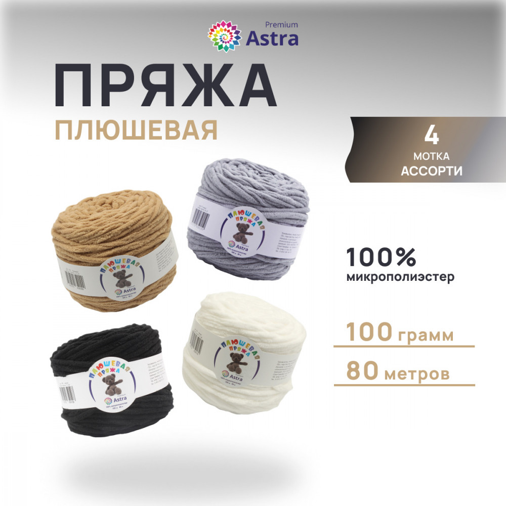 Набор пряжи «Плюшевая», цвет Ассорти №2 | Astra Premium
