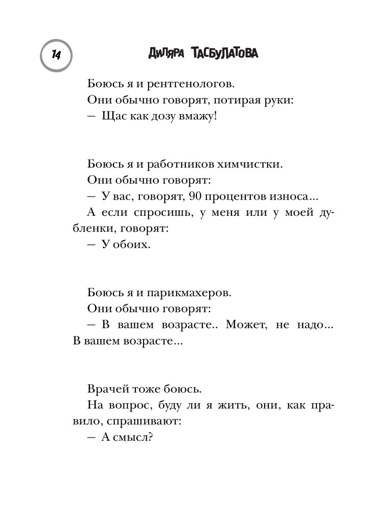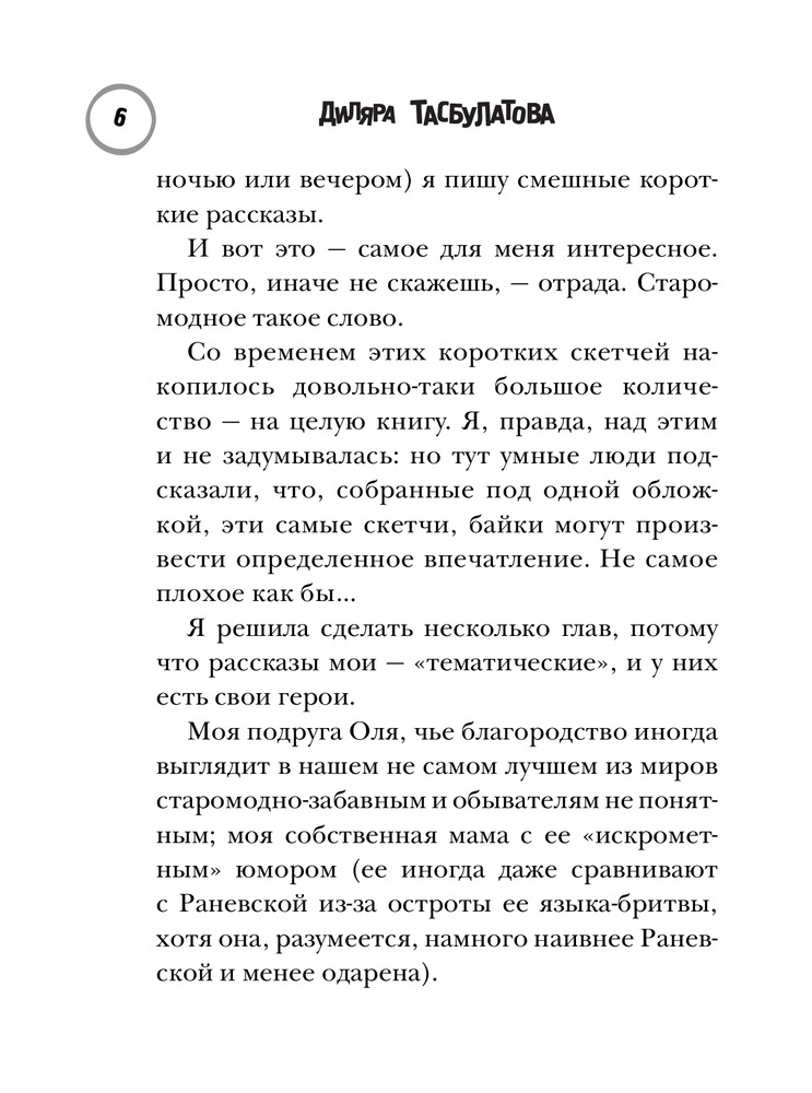 Сначала подумала - ну чистейшая же довлатовщина. Потом вспомнила про Тэффи. Потом - про Зощенко. И в итоге накрыло осознанием: вот если бы Хармс жил здесь и сейчас, и был бы казахской, остроумной, язвительной и интеллигентной, уехавшей в Россию, и при этом живой, а не мумифицированной женщиной - вот получилась бы Диляра Тасбулатова. Я не могу никак выбрать любимую байку. Потому что они волшебные все.