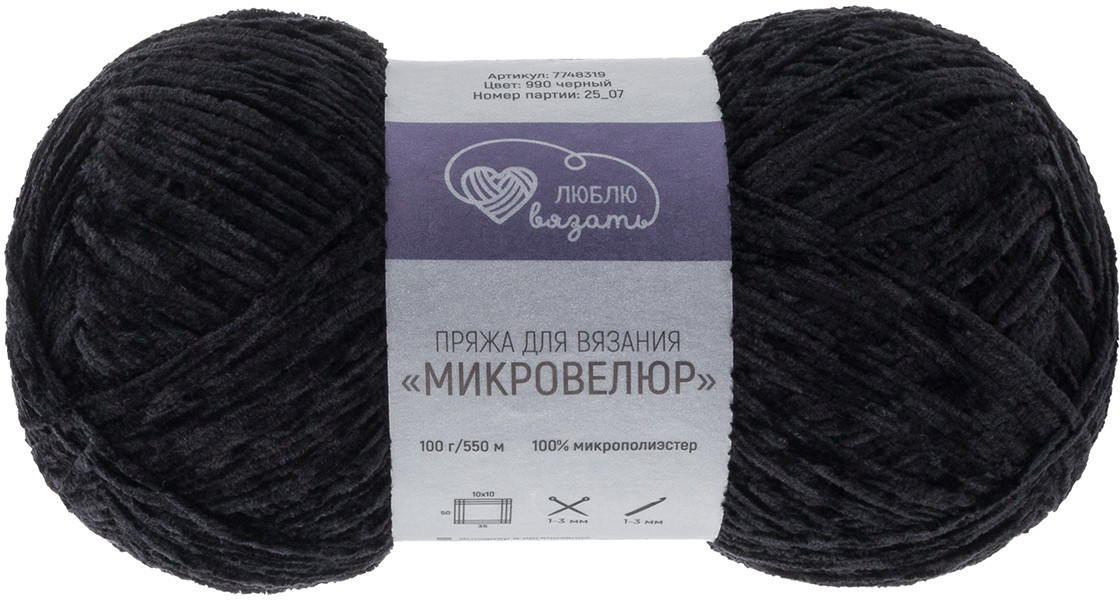 Люблю вязать Пряжа для вязания «Микровелюр», цвет 990 черный