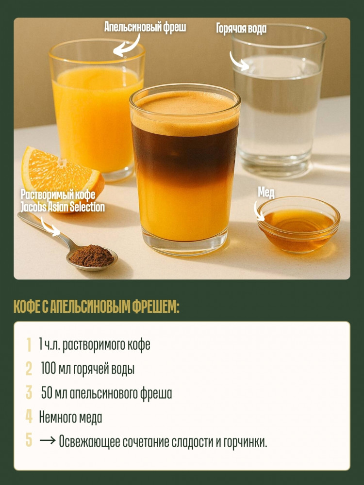 Jacobs Asian Selection приготовлен из зёрен, бережно собранных в экзотических уголках Юго Восточной Азии в регионах с уникальным климатом, который способствует усилению богатства палитры вкуса и аромата кофе. Насладитесь изысканным и аутентичным вкусом Jacobs Asian Selection!