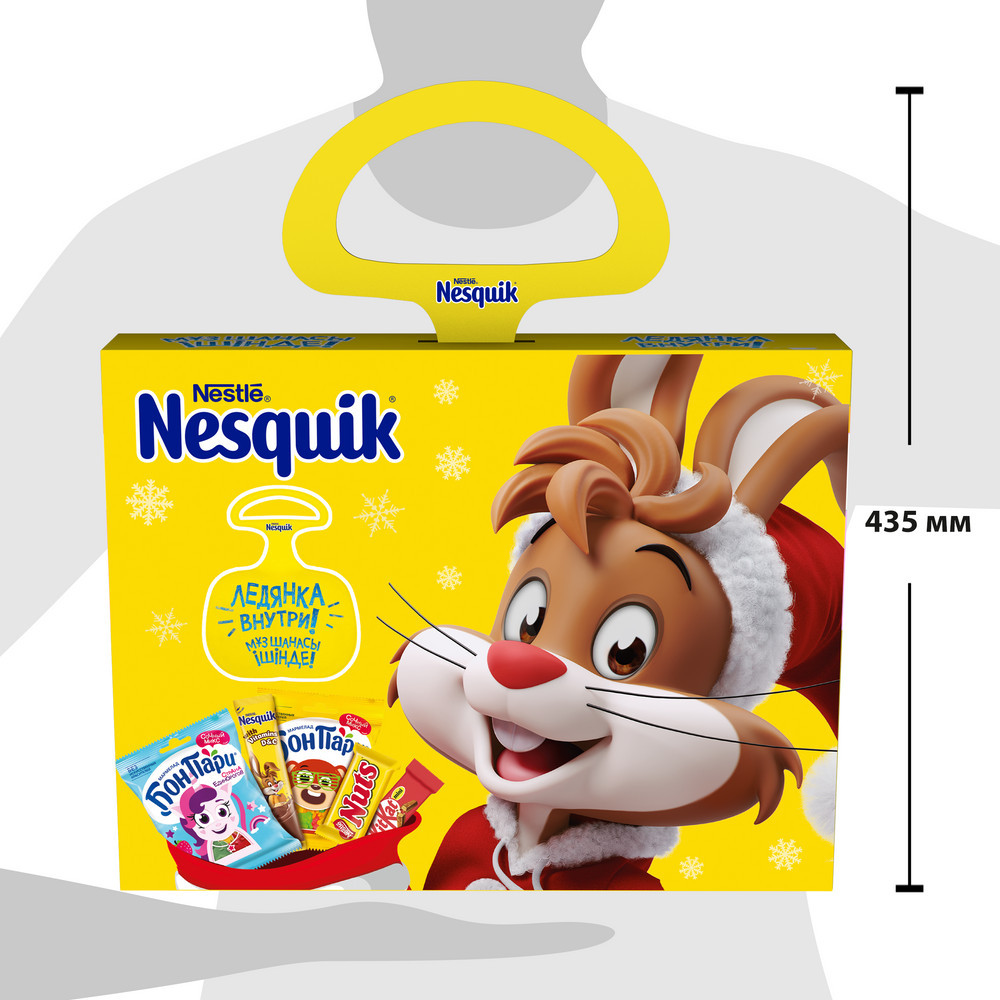 Nesquik. Какао-напиток быстрорастворимый, обогащённый: сахар, какао-порошок, эмульгатор (лецитины), соль йодированная (соль, йодат калия), витаминный премикс (витамины D, C), корица, ароматизатор (ванилин). Продукт может содержать молоко и глютен. Энергетическая ценность в 100 г: 1673 кДж / 400 ккал.