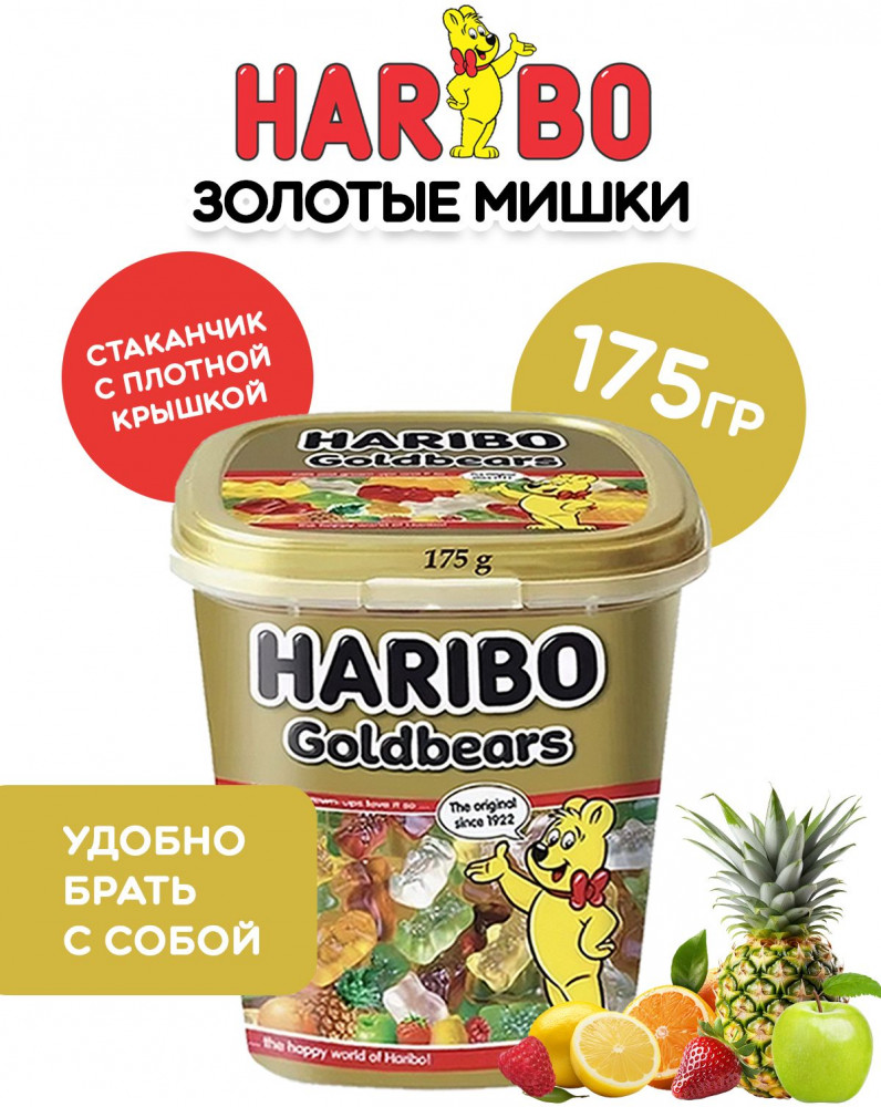 Сироп глюкозный, сахар-песок, желирующий агент: желатин, декстроза, соки фруктовые концентрированные: яблочный, малиновый, клубничный, апельсиновый, лимонный, ананасовый, регулятор кислотности: лимонная кислота, концентраты фруктовые и растительные: сафлор, спирулина, яблоко, ягоды бузины чёрной, апельсин, черная смородина, киви, лимон, арония, манго, маракуйя, виноград, ароматизаторы, экстракт ягод бузины чёрной, глазирователи: воск пчелиный белый и жёлтый, воск карнаубский.