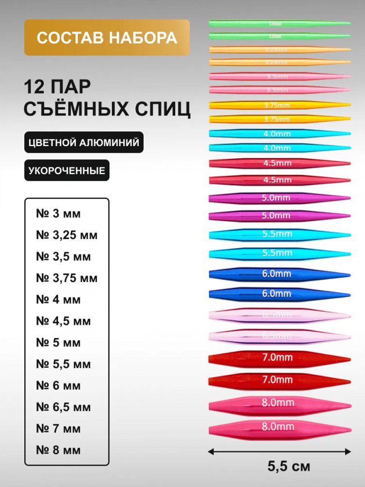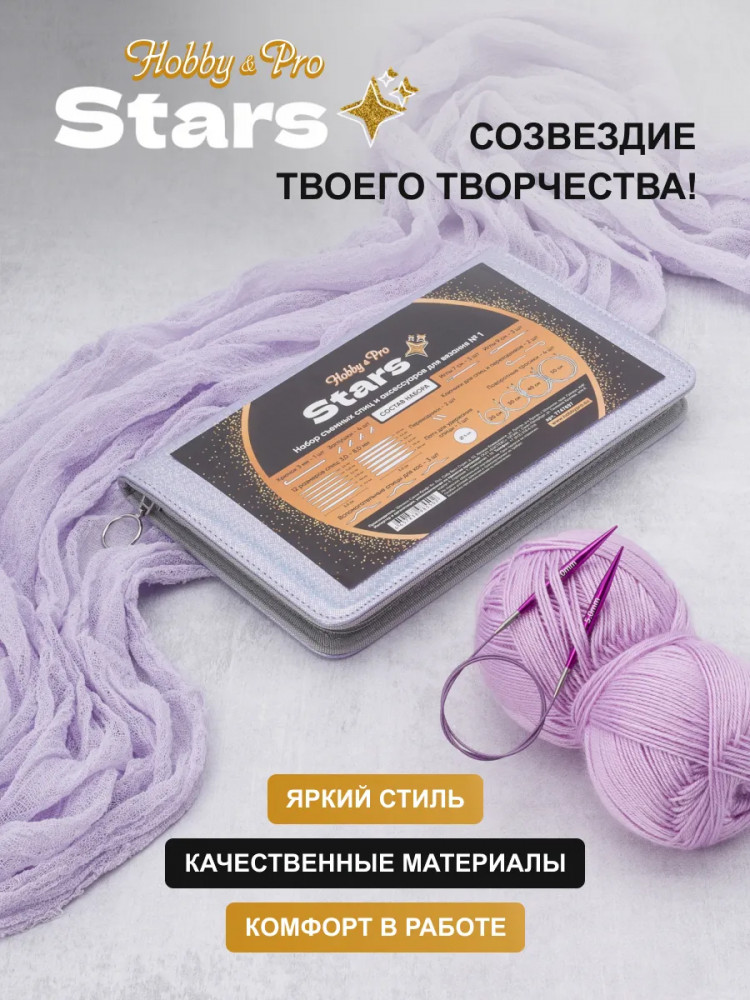 Серия: Stars Набор укороченных съемных спиц Hobby&Pro — прекрасный выбор для вязальщиц, ценящих качество, удобство и организованность. Он станет отличным подарком для тех, кто увлечен вязанием. Укороченные спицы длиной 5,5 см обеспечивают комфортное круговое вязание, особенно при создании узких деталей, таких как рукава, манжеты и горловины. В отличие от стандартных спиц, они предоставляют больше свободы движения петель в ограниченном пространстве.