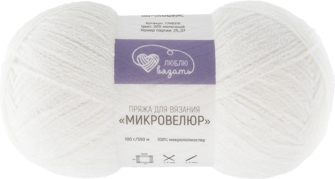 Пряжа для вязания «Микровелюр», цвет 020 Молочный | Люблю вязать