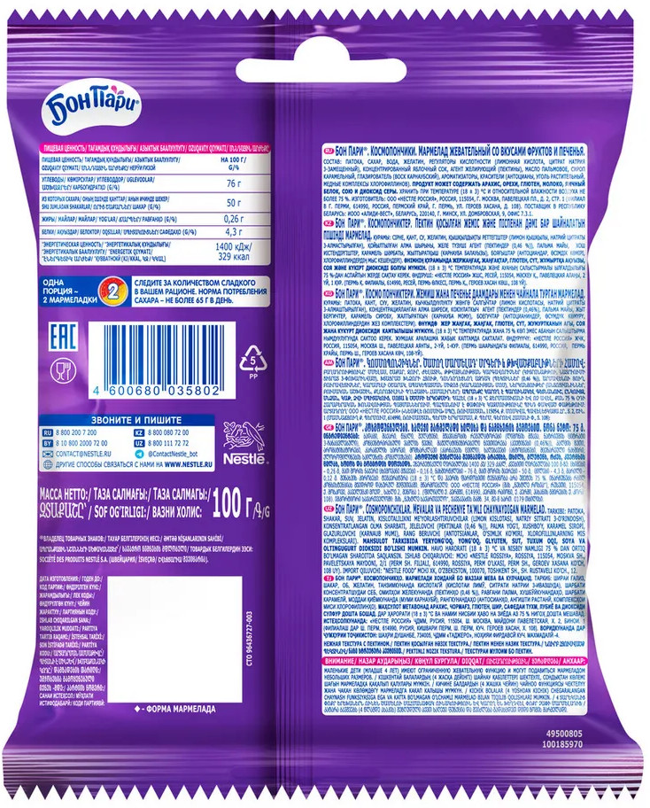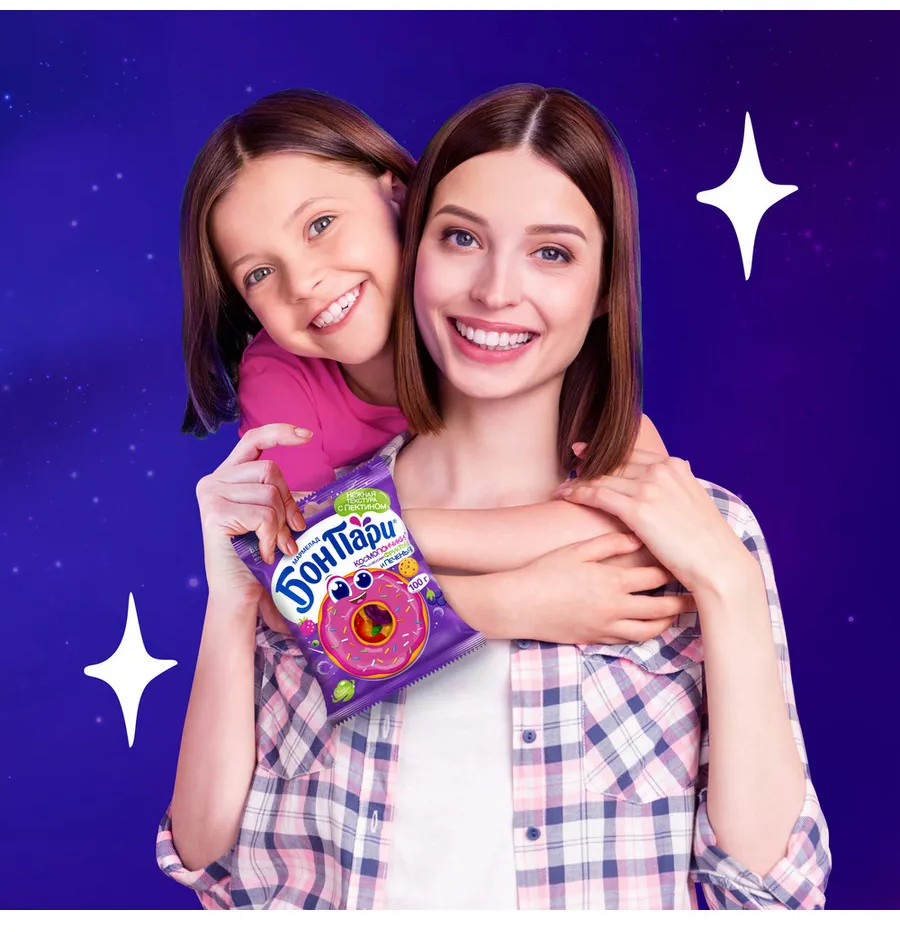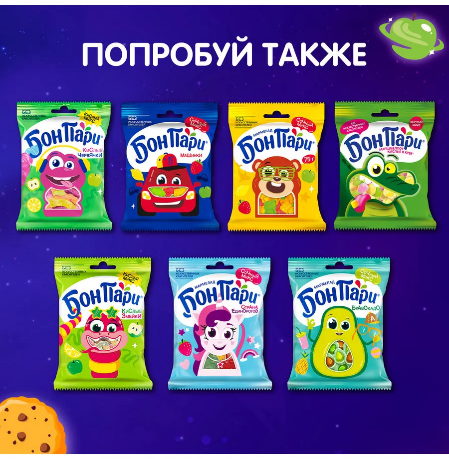 БонПари Мармелад жевательный со вкусом фруктов и печенья «Космопончики»