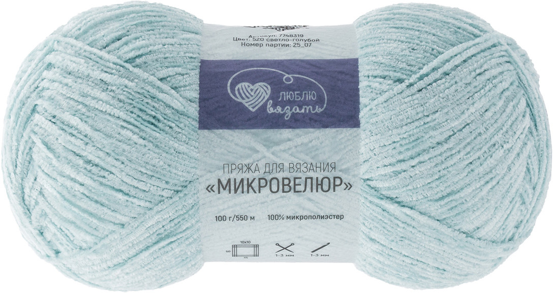 Пряжа для вязания «Микровелюр», цвет 520 Светло-голубой | Люблю вязать