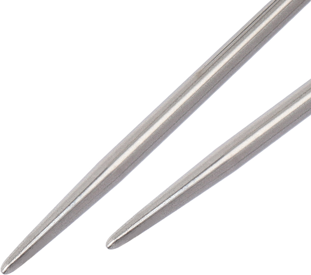 Спицы для вязания выполнены из высококачественной нержавеющей стали. Благодаря этому долговечному и универсальному материалу вы можете вязать изделия любой плотности и использовать различные типы пряжи: от тонкой шерсти до более толстых нитей. Гладкая поверхность спиц обеспечивает легкое скольжение пряжи, предотвращая ее деформацию и позволяя сохранить структуру и ворсистость волокна. Это особенно важно для тех, кто работает с деликатной и пушистой пряжей, ведь такая гладкость снижает риск образования зацепок и петелек. Концы спиц имеют слегка закругленную форму и не травмируют пальцы. Это особенно актуально для длительных вязальных сессий, когда комфорт рук имеет первостепенное значение.