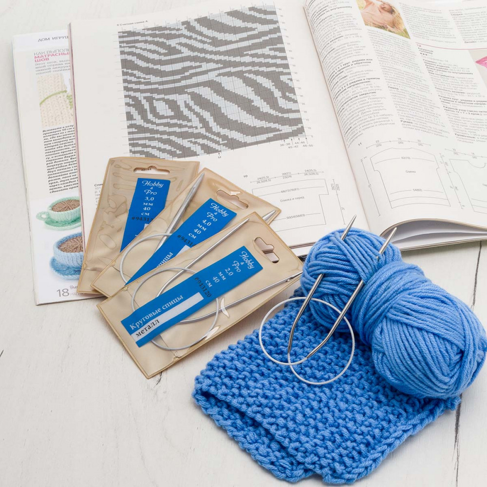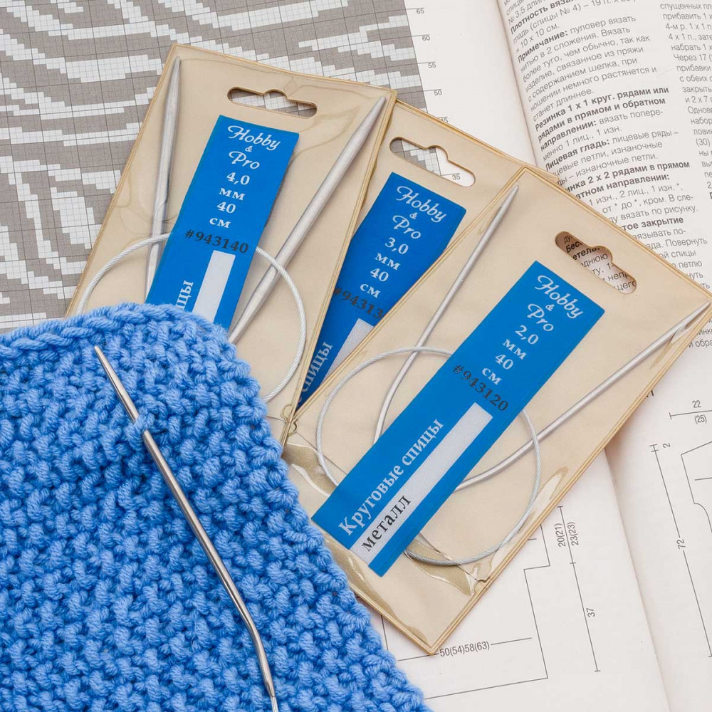 Спицы для вязания круговые из нержавеющей стали с металлическим тросиком от Hobby&Pro — идеальный инструмент для работы как в круговой, так и в прямой техниках вязания. В набор входят спицы круговые трёх размеров, с помощью которых можно создавать разнообразные вязаные изделия, такие как свитеры, манишки, шапки, снуды, а также более объемные вещи и широкие полотна: пледы и коврики.