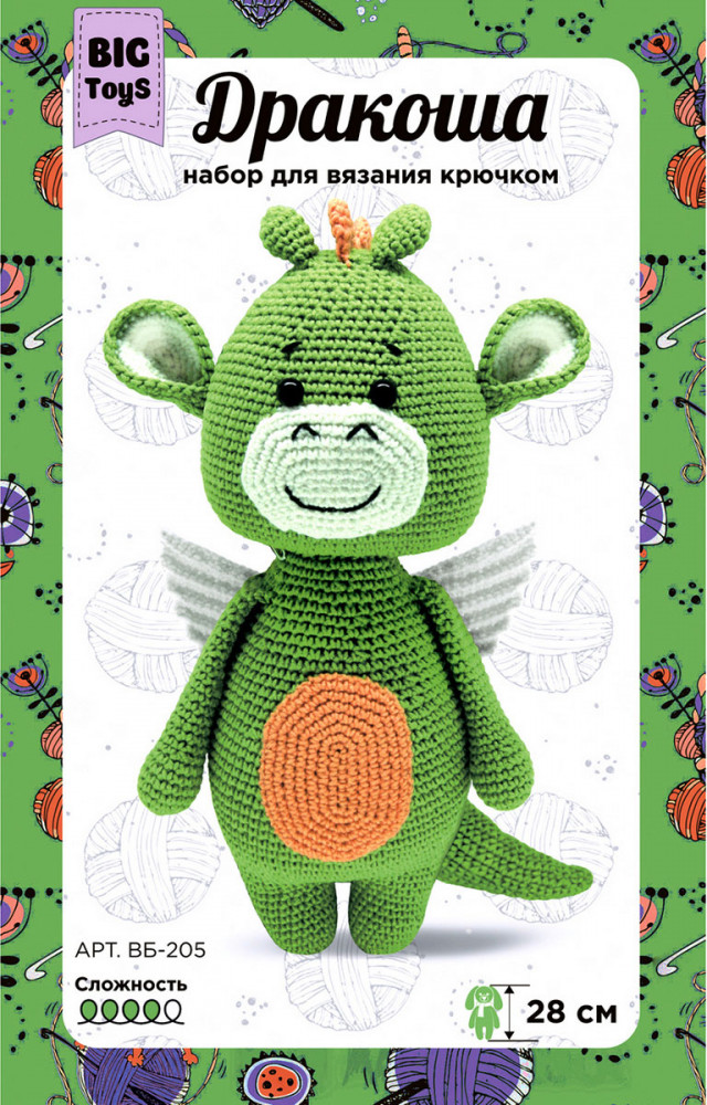 💳 Оплатить за товар можно при получении 🇰🇿 Есть бесплатная доставка по Казахстану 🎁 Копите бонусы с каждой покупки Серия: Big Toys Любите мастерить игрушки своими руками? Набор для создания мягкой игрушки «Дракончик» BIG Toys создан для вас. Игрушка вяжется крючком из обычной пряжи в модной технике амигуруми. Даже если это ваша первая поделка, справиться с заданием поможет подробная инструкция. Добавьте готовую игрушку в свою коллекцию сувениров или подарите ее близкому человеку. Ничто не помешает подобрать к образу несколько новых деталей – одежду, обувь, головной убор. Высота готовой игрушки: 25 см. |