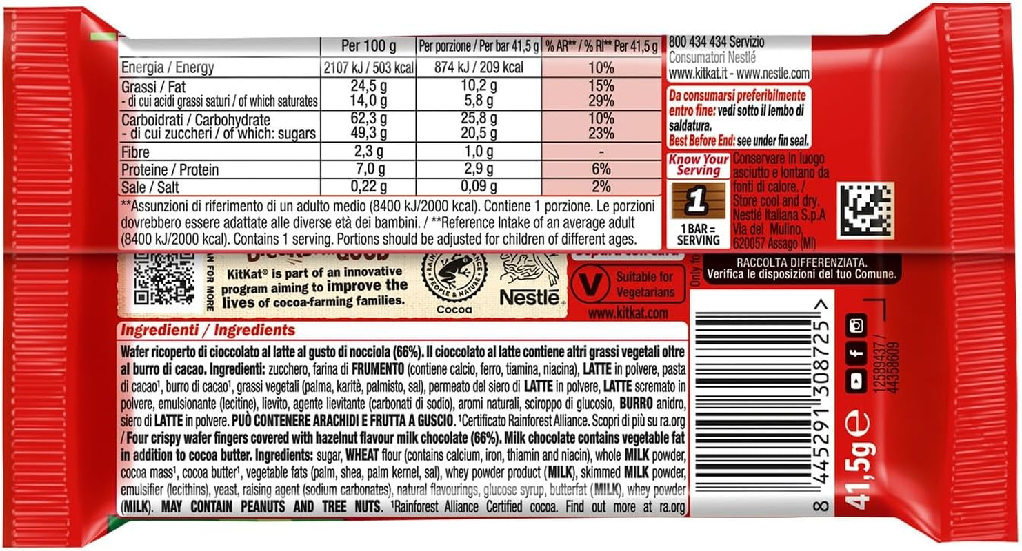 Культовый вкус KitKat в версии Hazelnutс молочным шоколадом со вкусом фундука. Перерыв создан для настоящих ценителей восхитительного вкуса фундука. Идеальный перекус, которым можно наслаждаться в одиночестве или в компании, и у которого никогда не кончатся перерывы. KitKat Hazelnut сочетает в себе удовольствие от молочного шоколада и вкус фундука с хрустящей вафлей культового брейка KitKat.