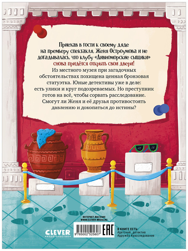 💳 Оплатить за товар можно при получении 🇰🇿 Есть бесплатная доставка по Казахстану от 1 дня 🎁 Копите бонусы с каждой покупки Серия: Дивноморские сыщики Приехав в гости к своему дяде на премьеру спектакля, Женя Остроумова и не догадывалась, что клубу «Дивноморские сыщики» снова придётся открыть свои двери! Из местного музея при загадочных обстоятельствах похищена ценная бронзовая статуэтка. Юные детективы уже в деле: есть улики и круг подозреваемых. Но преступник готов на всё, чтобы сорвать расследование. Смогут ли Женя и её друзья противостоять давлению и докопаться до истины? |