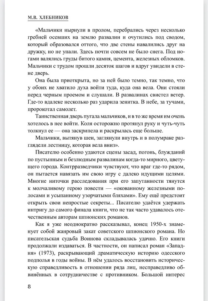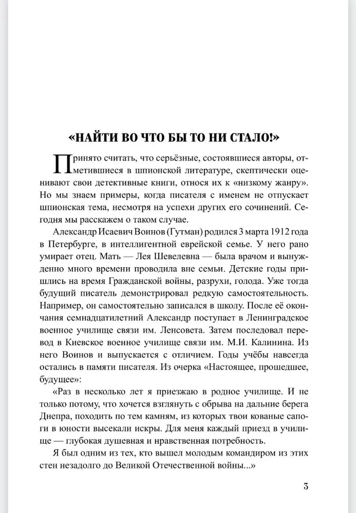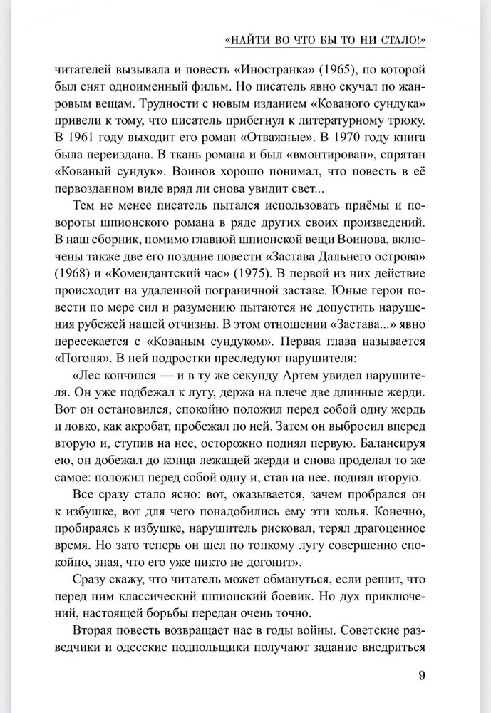💳 Оплатить за товар можно при получении 🇰🇿 Есть бесплатная доставка по Казахстану 🎁 Копите бонусы с каждой покупки Серия: Шпионы. Дело №... В творческом наследии крупного советского писателя Александра Исаевича Воинова (1912-1979) шпионская тема занимает особое место. Широкую известность завоевала его повесть «Кованый сундук» (1955). В центре сюжета — поиск вражеской агентуры во время Великой Отечественной войны. Отступающие немецкие войска пытаются затормозить натиск Красной армии с помощью глубоко законспирированной сети диверсантов. Перед нами один из лучших образцов советской приключенческой литературы: фронтовой документализм здесь удачно сочетается с напряженной фабулой. Точность деталей, борьба логики и интуиции с тщательно построенной «легендой» не дают возможности оторваться от чтения. В поздних повестях писателя «Застава Дальнего острова» (1968) и «Комендантский час» (1975) показано, как формируются характер советского человека, его неукротимая готовность к подвигу. В первой из них рассказано о подростках, живущих на приграничной территории. Даже в мирное время им необходимо принимать быстрые решения, от которых зависят жизни других людей. Во второй — о борьбе советской разведки за спасение одесского порта весной 1944 года. |