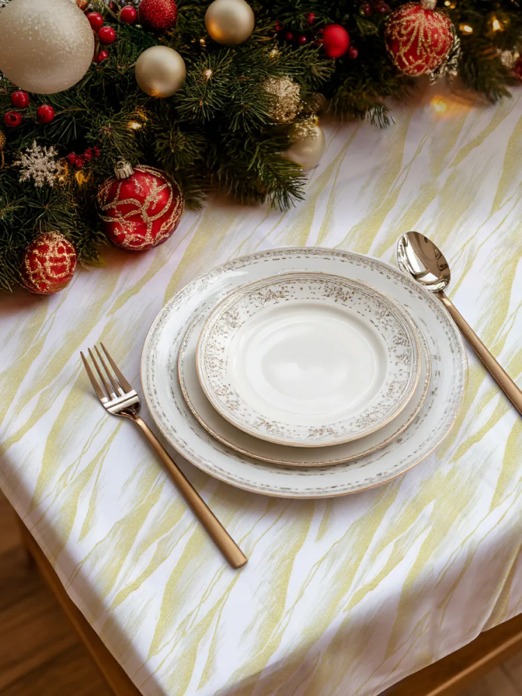 Кроме того, жаккардовая текстура придаёт изделию особый шарм, а стойкость к выцветанию после стирки гарантирует, что яркие цвета и узоры сохранят свою привлекательность на протяжении долгого времени. Эта скатерть станет не только практичным, но и стильным акцентом в вашем интерьере и на праздничком столе к Новому году! Жаккардовая скатерть украшена люрексом, который придаёт ей изысканный блеск и делает её ещё более привлекательной. Люрекс добавляет нотку роскоши и утончённости, что позволяет использовать эту скатерть не только в повседневной обстановке, но и для особых случаев, таких как праздники или семейные торжества. Сочетание практичности и эстетики делает эту скатерть идеальным выбором для любого интерьера. Продуманная технология пошива и премиум — качество обеспечивают долговечность и устойчивость к глажке. Кроме того, скатерть будет идеально гармонировать с любыми праздничными или декоративными предметами, создавая теплую и радостную атмосферу в вашем доме в любое время года. Вы можете приобрести это эстетичное и функциональное изделие прямо сейчас, чтобы добавить изысканности и стиля вашему интерьеру. Помимо использования в домашних условиях, данная скатерть будет уместна и для улицы.