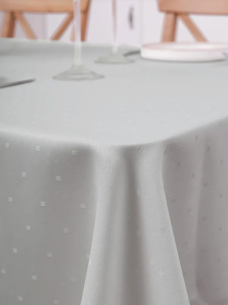 Жаккардовая скатерть с водоотталкивающей пропиткой. Эта скатерть станет идеальным дополнением вашего стола, придавая ему элегантный и стильный вид. Скатерть изготовлена из 100% полиэстера, она отличается высокой износостойкостью и долговечностью, что делает её практичным выбором для повседневного использования. Благодаря специальной водоотталкивающей пропитке, скатерть защищает поверхность от пятен и влаги, что значительно упрощает уход за ней. Вы можете не беспокоиться о случайных пролитиях — достаточно просто протереть поверхность, и она снова будет выглядеть как новая. Такое надежное защитное покрытие незаменимо для вашего обеденного столика.