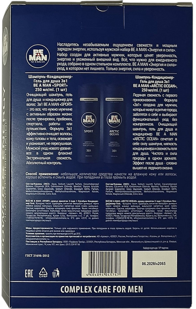 Насладитесь незабываемым ощущением свежести и мощным зарядом энергии, используя мужской набор Be a man «Энергия и сила». Набор создан для активных мужчин, которые ценят уверенность, ухоженный внешний вид. Всё, что нужно для ежедневного ухода, собрано в одном стильном комплекте. «Энергия и сила» — уход, в котором нет лишнего. Только энергия, сила и уверенность.