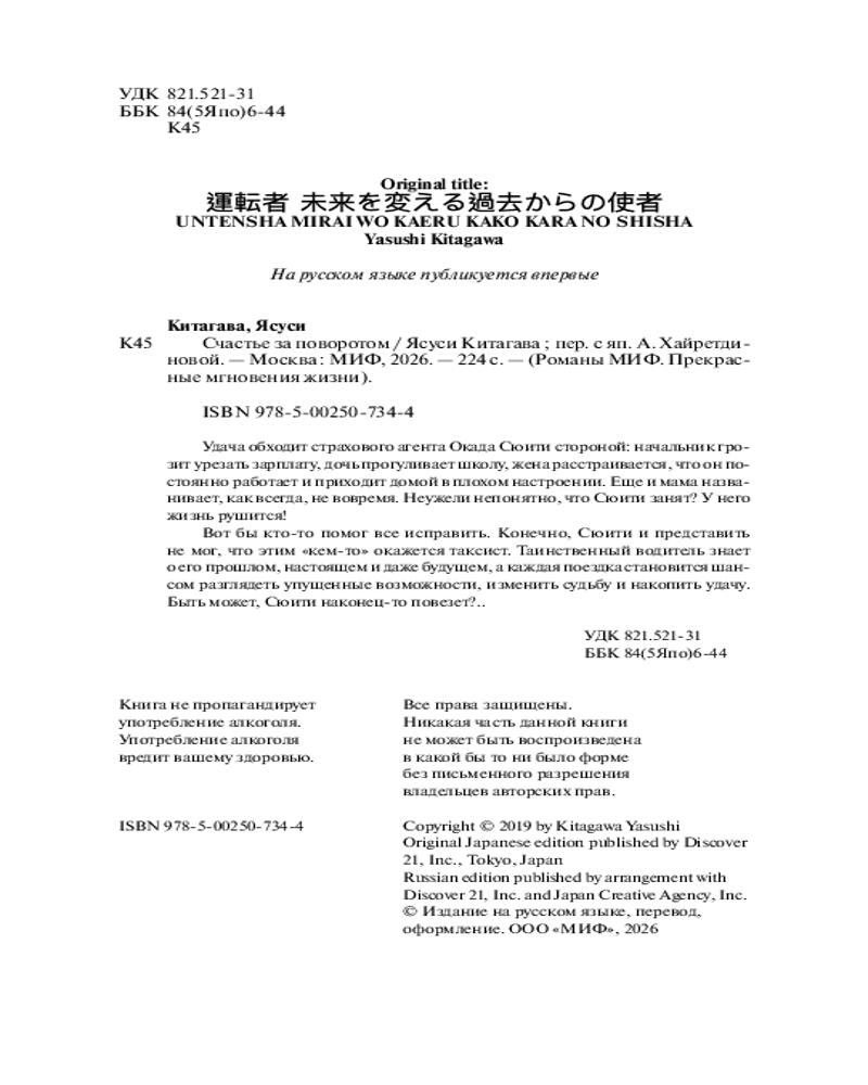 💳 Оплатить за товар можно при получении 🇰🇿 Есть бесплатная доставка по Казахстану 🎁 Копите бонусы с каждой покупки Серия: Романы МИФ. Прекрасные мгновения жизни Удача обходит страхового агента Окада Сюити стороной: начальник грозит урезать зарплату, дочь прогуливает школу, жена расстраивается, что он постоянно работает и приходит домой в плохом настроении. Еще и мама названивает, как всегда, не вовремя. Неужели непонятно, что Сюити занят? У него жизнь рушится! |