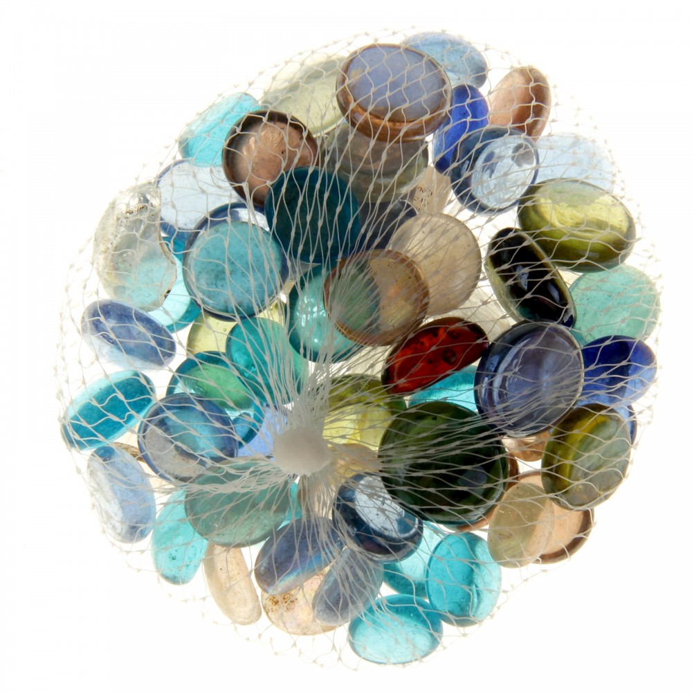 Камушки гладкие, маленькие правда. Битых не было. Упакованы в сетку. Очень радуют глаз - вазочку украшают.