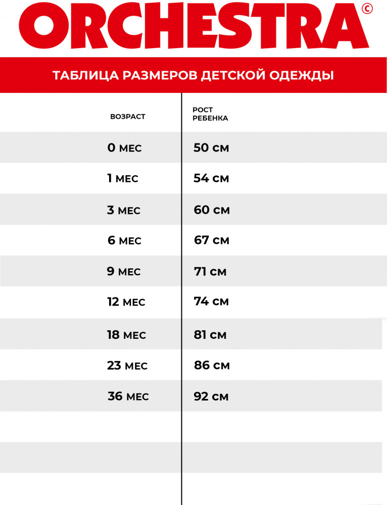 ORCHESTRA — один из мировых лидеров по производству высококачественной детской одежды. Продукция марки представлена по всему миру. На сегодняшний день это более 770 магазинов в 50 странах мира. Ассортимент детской одежды ORCHESTRA не оставит равнодушным даже самого искушенного покупателя. Высокое качество, натуральные ткани и яркая цветовая гамма присущи всей продукции ORCHESTRA для детей.