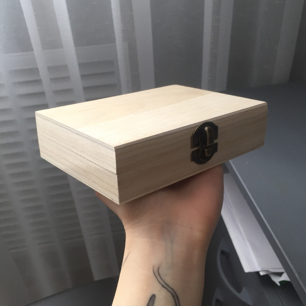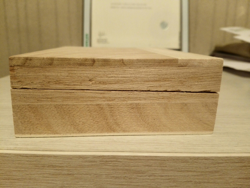 Хорошая коробочка. Дно сделано из фанеры, а крышка из тонкого дерева с естественным рисунком дерева.