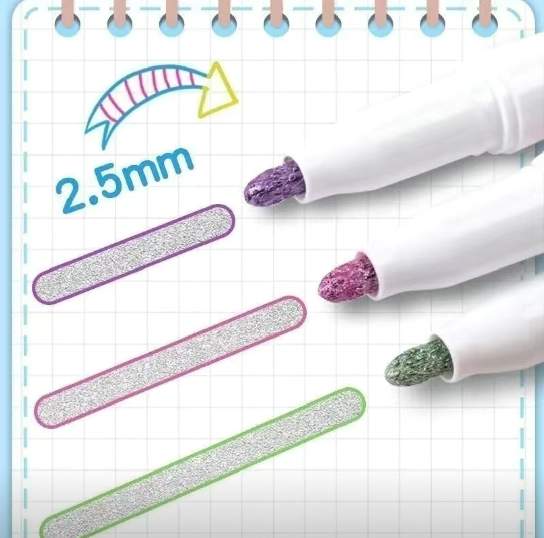 💳 Оплатить за товар можно при получении 🇰🇿 Есть бесплатная доставка по Казахстану 🎁 Копите бонусы с каждой покупки Набор фломастеров для рисования с цветом металлик и двойным контуром — новинка в мире канцелярских товаров! Использование маркеров с двойным контуром сделает Ваши рисунки объёмным, мерцающими и более выразительными — ведь основной цвет маркеров серебристый с эффектом металлик. За счёт уникальной формы кончика фломастера линия получается двойной — в центре серебристая с ярким цветным контуром. |