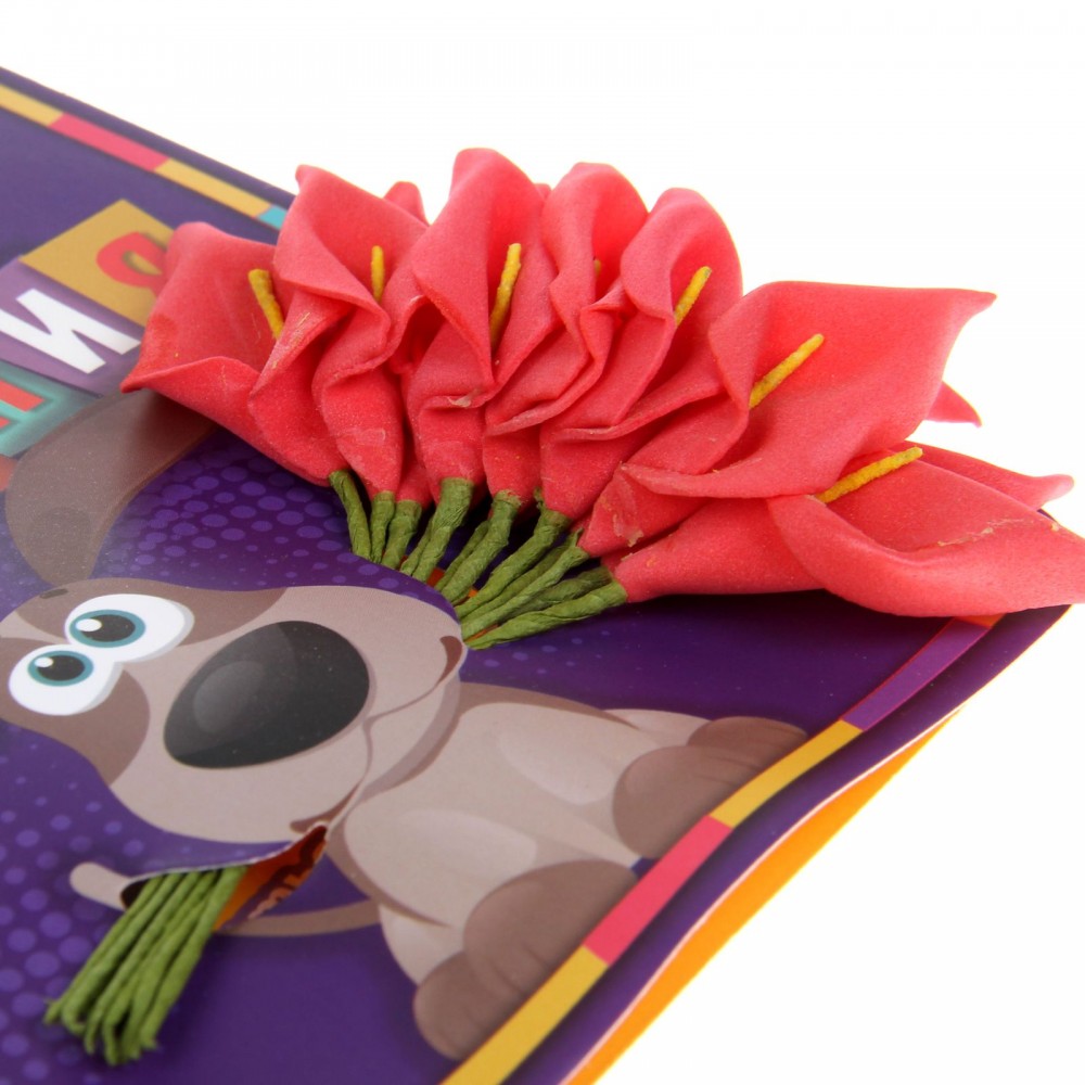Открытка очень понравилась. Мило, оригинально и не слишком броско, но при этом красочно. Единственный недостаток открытки - это внутренняя пустота. То есть левая внутренняя часть открытки абсолютно пустая, плюс некрасиво виднеется часть стебельков.