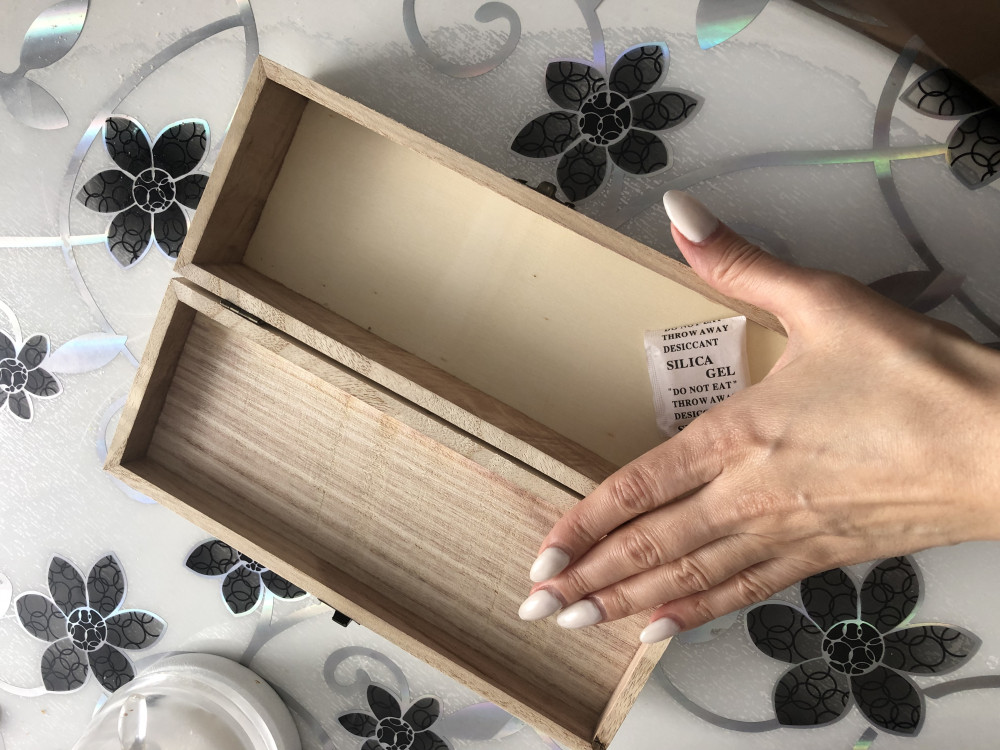 Шкатулку брала под декупаж, поэтому небольшие погрешности меня не расстроили.