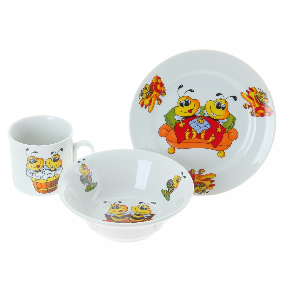 Добруш Набор посуды «Пчелы», 3 предмета-25% +202 яркие картинки качественный фарфор детский размер гладкое дно