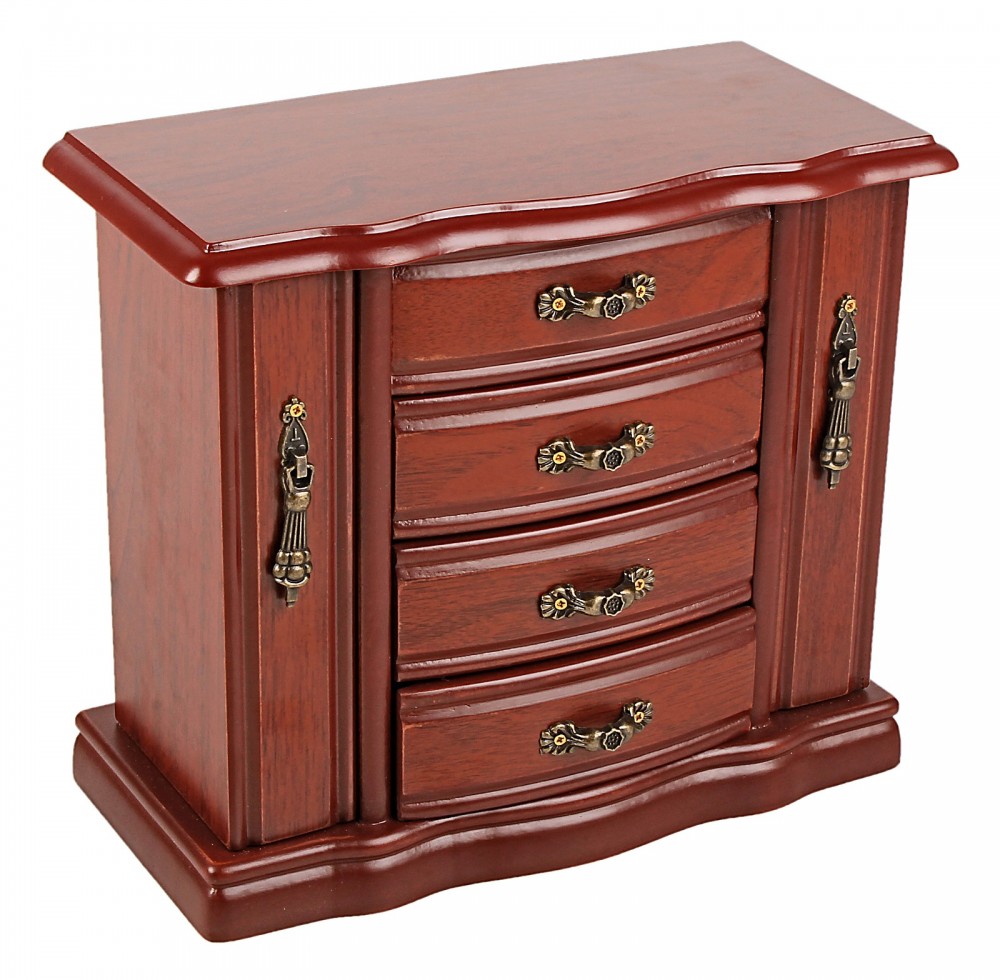 Шкатулка «Шкаф» 4 ящика, 2 двери, резная дверцаВ данный момент этот товар отсутствует в продаже. Возможно, у нас найдется аналогичный или похожий товар здесь. Оригинальная шкатулка для драгоценностей в виде изящной мебели – идеальный подарок для истинной леди. Изделие выполнено из натурального дерева, украшено винтажными декоративными элементами. Купить шкатулку можно к любому празднику, будь то День Рождения, годовщина свадьбы или 8 марта. |