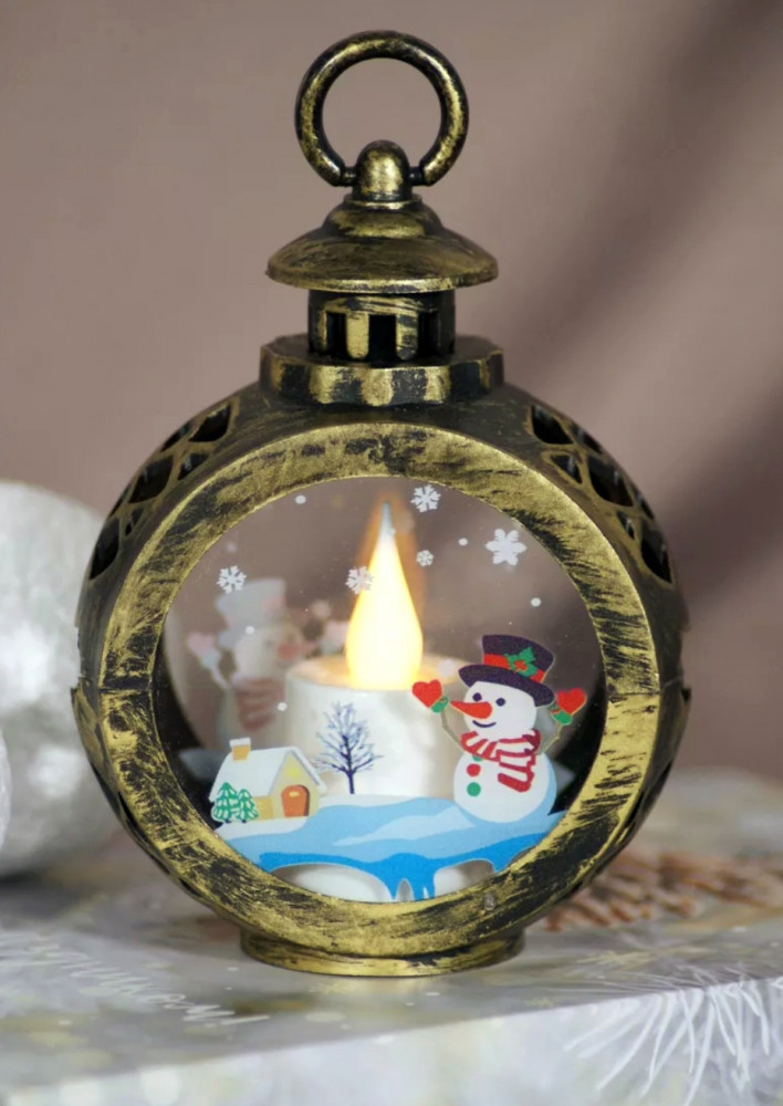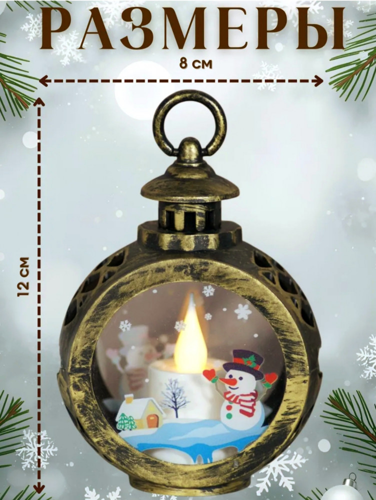Новогодний декоративный светодиодный фонарь ночник Снеговик имеет компактный размер 12 см. Станет ярким украшением вашего дома и незабываемым элементом праздничной атмосферы на Новый год и Рождество. Подвесная свеча — универсальный предмет, который можно повесить на елочку как игрушку, а также может использоваться как светильник для стола. Его стильный дизайн в виде классического подвесного фонаря выполнен в бронзовом оттенке.