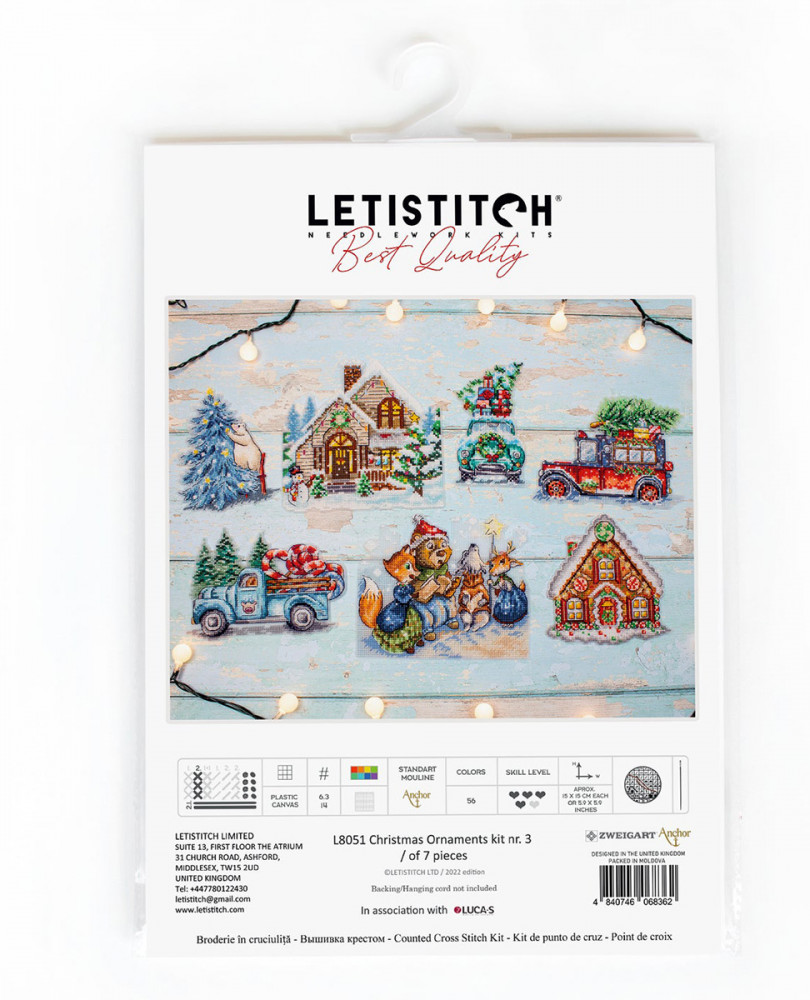 LetiStitch Набор для вышивания «Набор рождественских игрушек №3»-30% +617