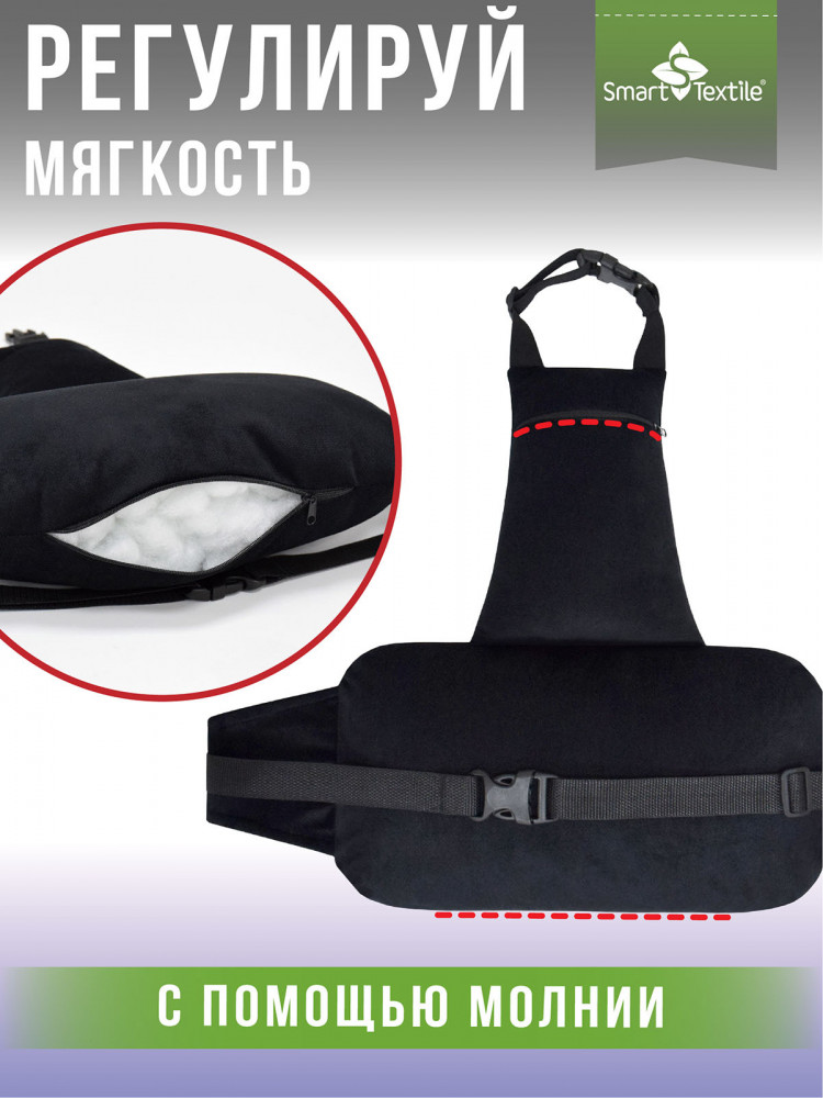 Подушка изготовлена из мягкого и прочного велюра «кабрио», который приятен на ощупь, устойчив к износу и отлично вписывается в интерьер автомобиля. Наполнитель из файбера обеспечивает оптимальную упругость и долговечность. Благодаря присутствию молнии вы можете регулировать степень наполнения, подстраивая подушку под стиль вождения или особенности посадки.