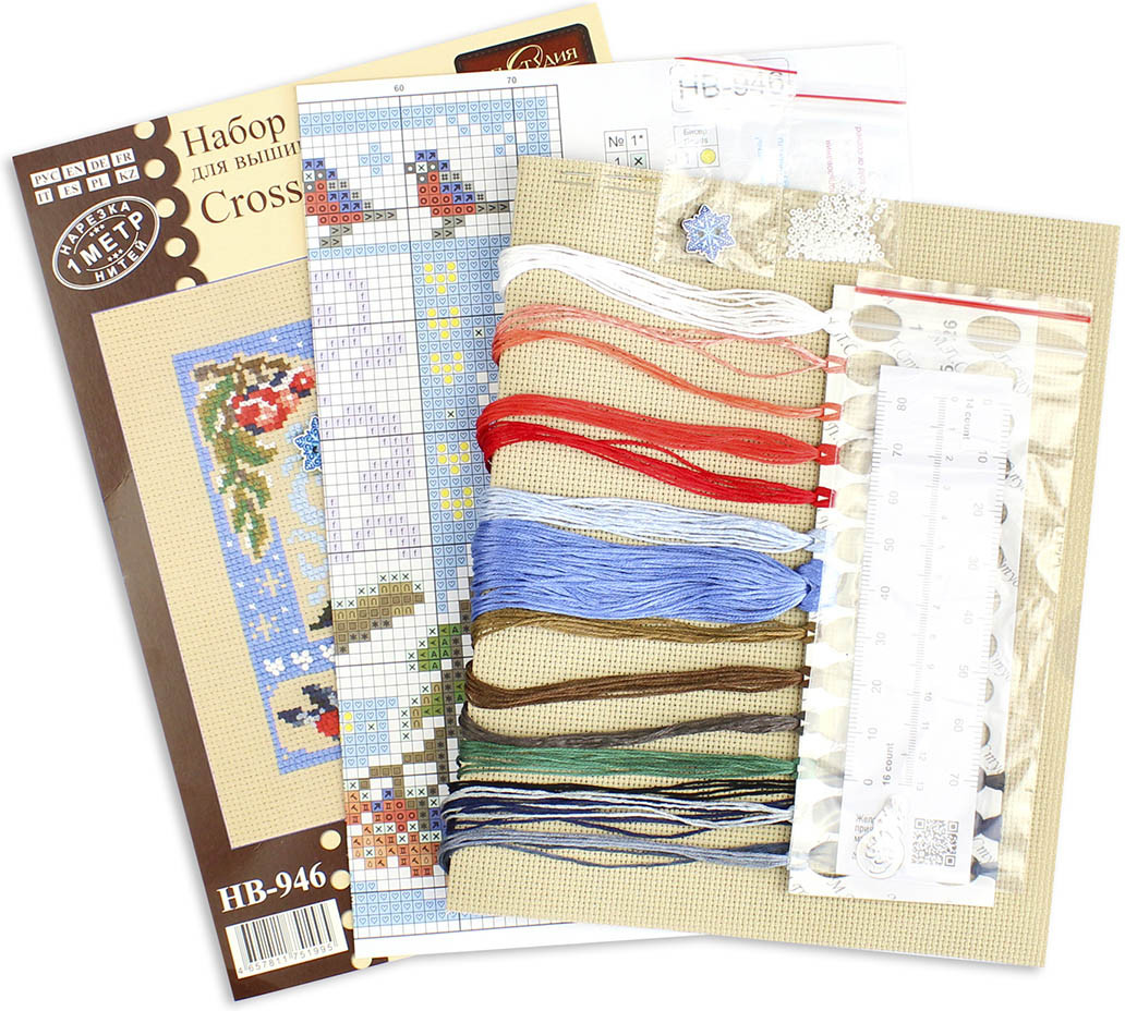 В наборе: канва Aida 14 ct бежевая, хлопковое мулине Гамма 16 цв., бисер Preciosa — 1 цв., печатный декор — 1 шт., игла, цвето-символьная схема, вышивальная линейка, нитковдеватель, инструкция. |