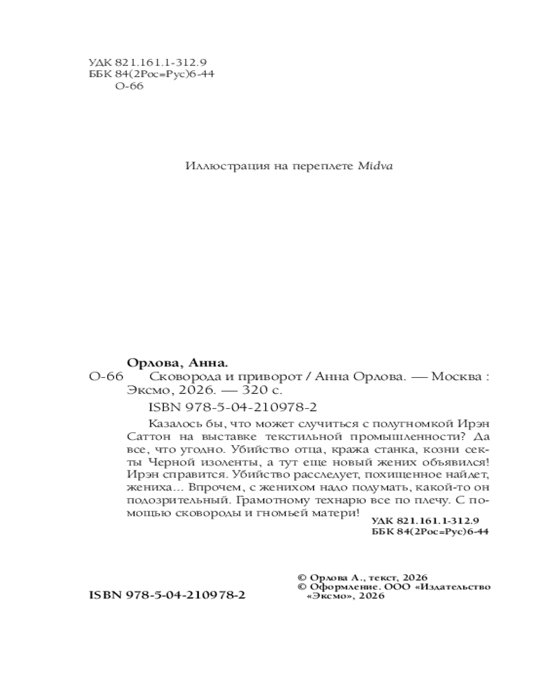 💳 Оплатить за товар можно при получении 🇰🇿 Есть бесплатная доставка по Казахстану 🎁 Копите бонусы с каждой покупки Серия: Ведьмы ведут следствие Казалось бы, что может случиться с полугномкой Ирэн Саттон на выставке текстильной промышленности? Да всё, что угодно. Убийство отца, кража станка, козни секты Черной изоленты, а тут еще новый жених объявился! Ирэн справится. Убийство расследует, похищенное найдет, жениха... Впрочем, с женихом надо подумать, какой-то он подозрительный. Грамотному технарю всё по плечу. С помощью сковороды и гномьей матери! |