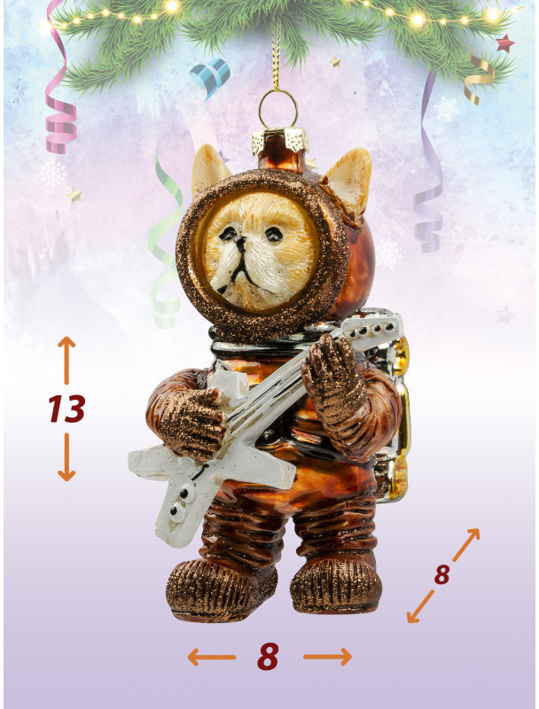 💳 Оплатить за товар можно при получении 🇰🇿 Есть бесплатная доставка по Казахстану 🎁 Копите бонусы с каждой покупки Погрузитесь в атмосферу зимнего волшебства с наши уникальными стеклянным новогодними игрушками. Изящные украшения, которые привносят свой собственный шарм в праздник. Собака-космонавт в коричневом скафандре и электро-гитарой в руках станет отличным акцентом на вашей ёлке. Дополнительный материл элементов игрушки — полистоун. Украшение создаст особое настроение. Каждое украшение изготовлено из высококачественного стекла, что гарантирует их долговечность и сохранение красоты на многие годы. Это идеальный выбор для создания незабываемого новогоднего настроения и волшебства в вашем доме! |