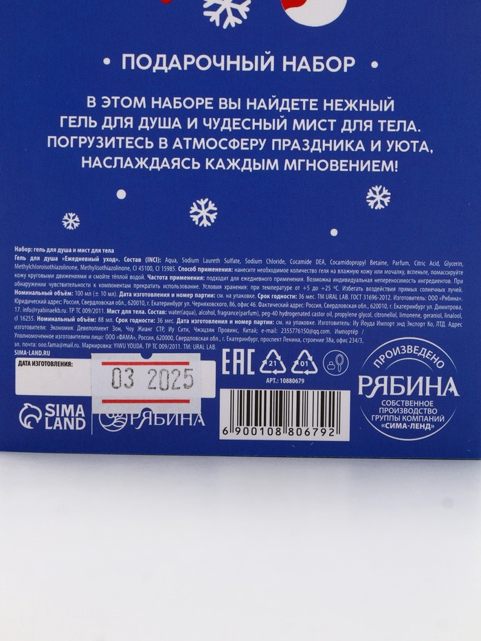 💳 Оплатить за товар можно при получении 🇰🇿 Есть бесплатная доставка по Казахстану 🎁 Копите бонусы с каждой покупки «Новогодний подарочный набор косметики: гель для душа и мист для тела». Подарите себе или близким ощущение праздника и свежести с нашим новогодним набором косметики! В наборе вы найдёте гель для душа (100 мл) и мист для тела (88 мл) — идеальный выбор для ежедневного ухода за кожей. Набор станет отличным подарком для себя или близких. Он подходит для ежедневного использования и поможет создать праздничное настроение. Порадуйте себя и своих близких качественным уходом и приятным ароматом в новогодние праздники! |
