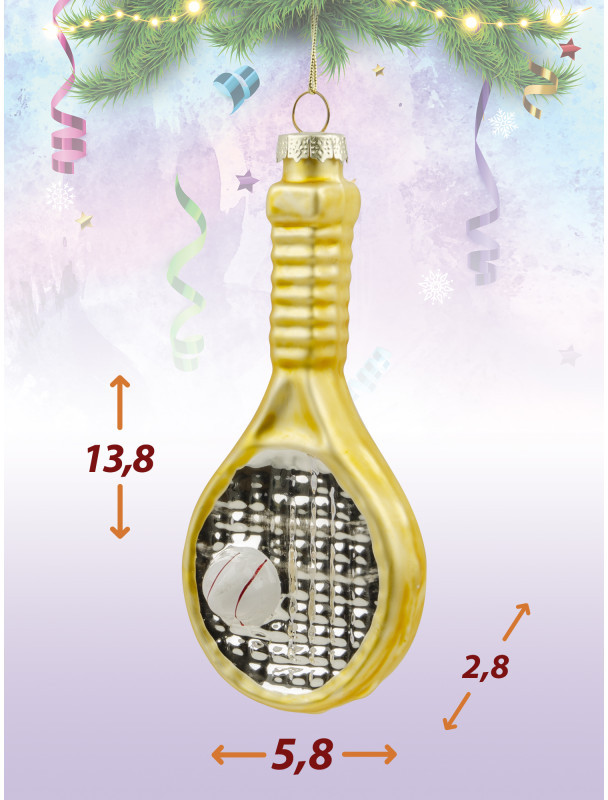 Ultramarin Игрушка ёлочная «Ракетка с мячиком»В данный момент этот товар отсутствует в продаже. Возможно, у нас найдется аналогичный или похожий товар здесь. Погрузитесь в атмосферу зимнего волшебства с наши уникальными стеклянным новогодними игрушками. Изящные украшения, которые привносят свой собственный шарм в праздник. Золотистая теннисная ракетка с мячиком на серебристой решетке станет отличным акцентом на вашей ёлке. Украшение создаст особое настроение. Каждое украшение изготовлено из высококачественного стекла, что гарантирует их долговечность и сохранение красоты на многие годы. Это идеальный выбор для создания незабываемого новогоднего настроения и волшебства в вашем доме! |
