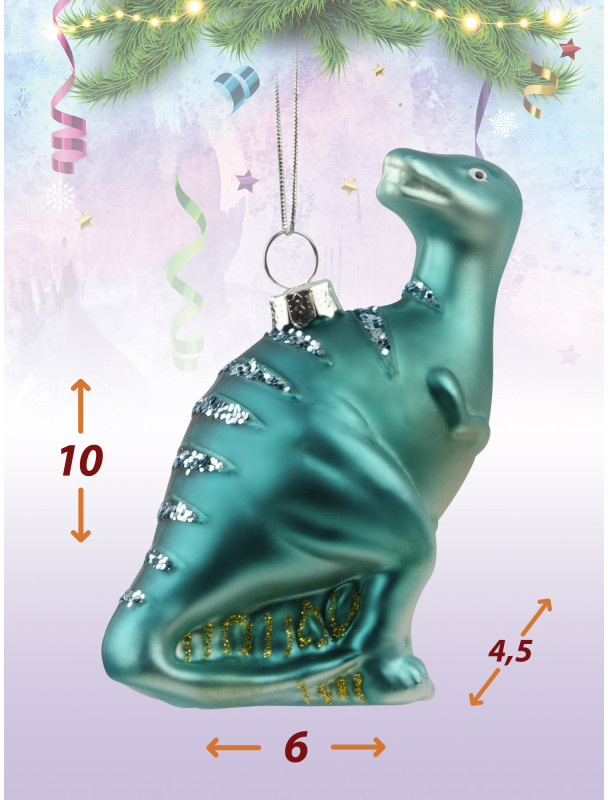 Погрузитесь в атмосферу зимнего волшебства с наши уникальными стеклянным новогодними игрушками. Изящные украшения, которые привносят свой собственный шарм в праздник. Милый синий динозаврик, сидящий на камне, с декором из серебристых и золотых блесток станет отличным акцентом на вашей ёлке. Украшение создаст особое настроение. Каждое украшение изготовлено из высококачественного стекла, что гарантирует их долговечность и сохранение красоты на многие годы. Это идеальный выбор для создания незабываемого новогоднего настроения и волшебства в вашем доме!