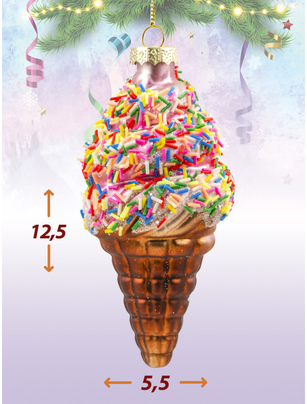💳 Оплатить за товар можно при получении 🇰🇿 Есть бесплатная доставка по Казахстану от 1 дня 🎁 Копите бонусы с каждой покупки Погрузитесь в атмосферу зимнего волшебства с наши уникальными стеклянным новогодними игрушками. Изящные украшения, которые привносят свой собственный шарм в праздник. Мороженое в рожке с кремом крем-брюле и большим количеством разноцветной посыпки станет отличным акцентом на вашей ёлке. Украшение создаст особое настроение. Размер игрушки 12.5×5.5 см. Каждое украшение изготовлено из высококачественного стекла, что гарантирует их долговечность и сохранение красоты на многие годы. Это идеальный выбор для создания незабываемого новогоднего настроения и волшебства в вашем доме! |