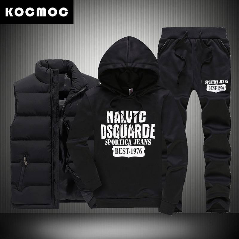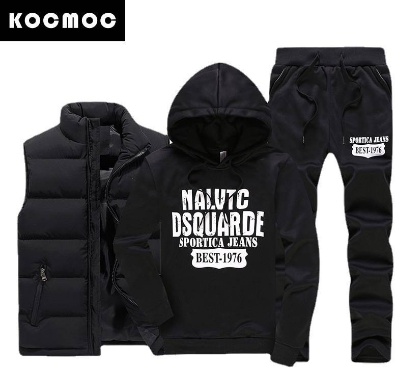 Комплект из трех предметов для мужчин: худи с капюшоном и буквенным принтом, жилет и брюки — это универсальный зимний комплект, который сочетает комфорт и стиль. Этот комплект не только функционален и стильный, но и подходит для различных зимних активностей, обеспечивая тепло и элегантность в любых условиях.