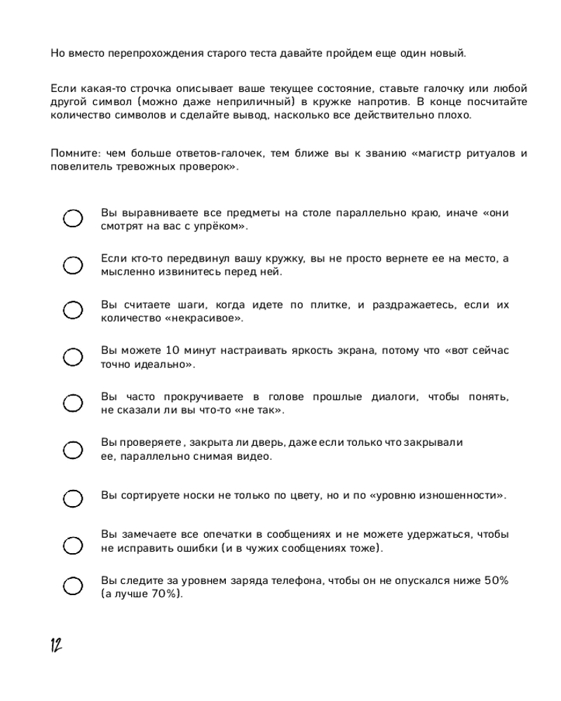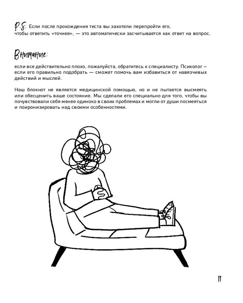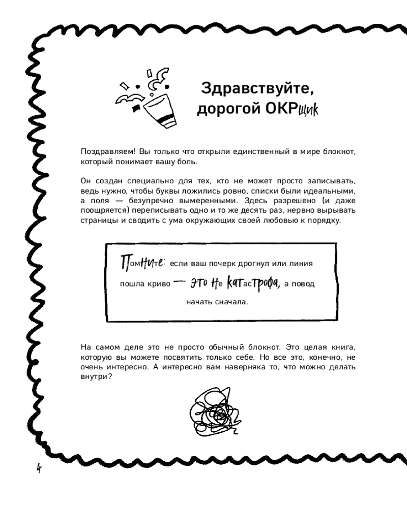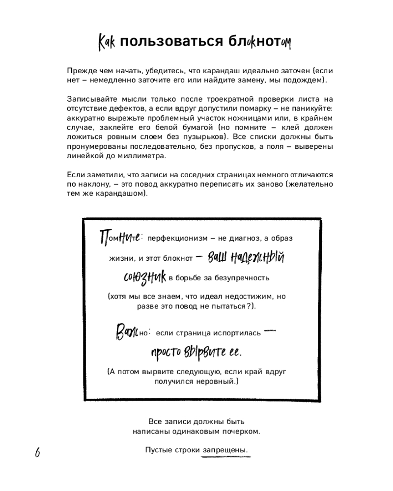 💳 Оплатить за товар можно при получении 🇰🇿 Есть бесплатная доставка по Казахстану от 1 дня 🎁 Копите бонусы с каждой покупки Серия: Моя ироничная терапия. Блокноты для неидеальных людей «Миллиметр до идеала» — это ироничный блокнот-антистресс для перфекционистов. Внутри вас ждут психологические тесты, провокационные задания и чек-листы, которые помогают осознать свои ритуалы через юмор. Специальные страницы разрешают (и даже поощряют!) вырывать листы, переписывать текст и доводить каждую деталь до идеала. Это не просто блокнот, а безопасное пространство, где можно посмеяться над своими особенностями и немного ослабить контроль за всем и вся. Блокнот идеален для перфекционистов, которые устали от собственных стандартов. |