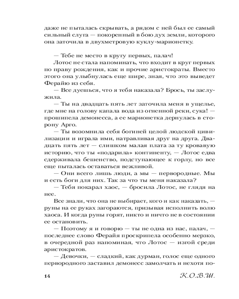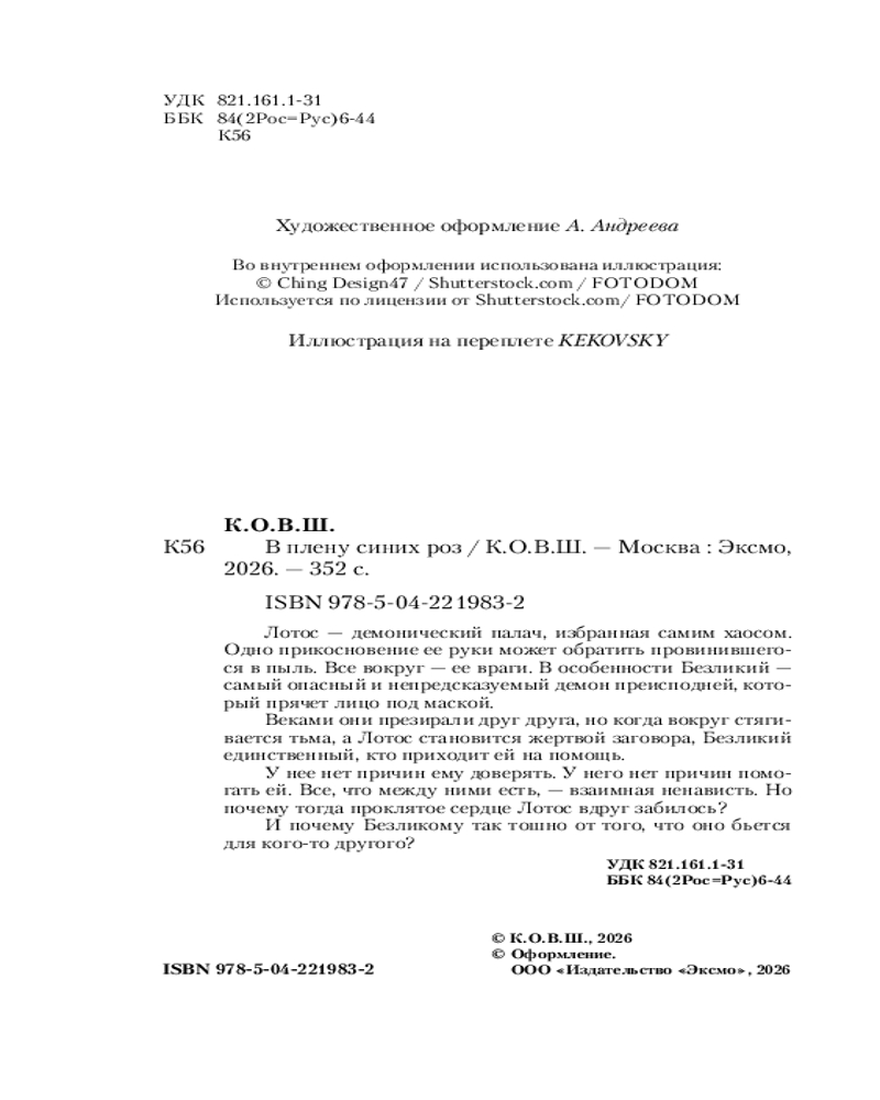 💳 Оплатить за товар можно при получении 🇰🇿 Есть бесплатная доставка по Казахстану 🎁 Копите бонусы с каждой покупки Серия: Young Adult. Соври, что не любишь. Романтика от К.О.В.Ш. Лотос — демонический палач, избранная самим хаосом. Одно прикосновение ее руки может обратить провинившегося в пыль. Все вокруг — ее враги. В особенности Безликий — самый опасный и непредсказуемый демон преисподней, который прячет лицо под маской. Веками они презирали друг друга, но когда вокруг стягивается тьма, а Лотос становится жертвой заговора, Безликий — единственный, кто приходит ей на помощь. У нее нет причин ему доверять. У него нет причин помогать ей. Всё, что между ними есть, — взаимная ненависть. Но почему тогда проклятое сердце Лотос вдруг забилось? И почему Безликому так тошно от того, что оно бьется для кого-то другого? |