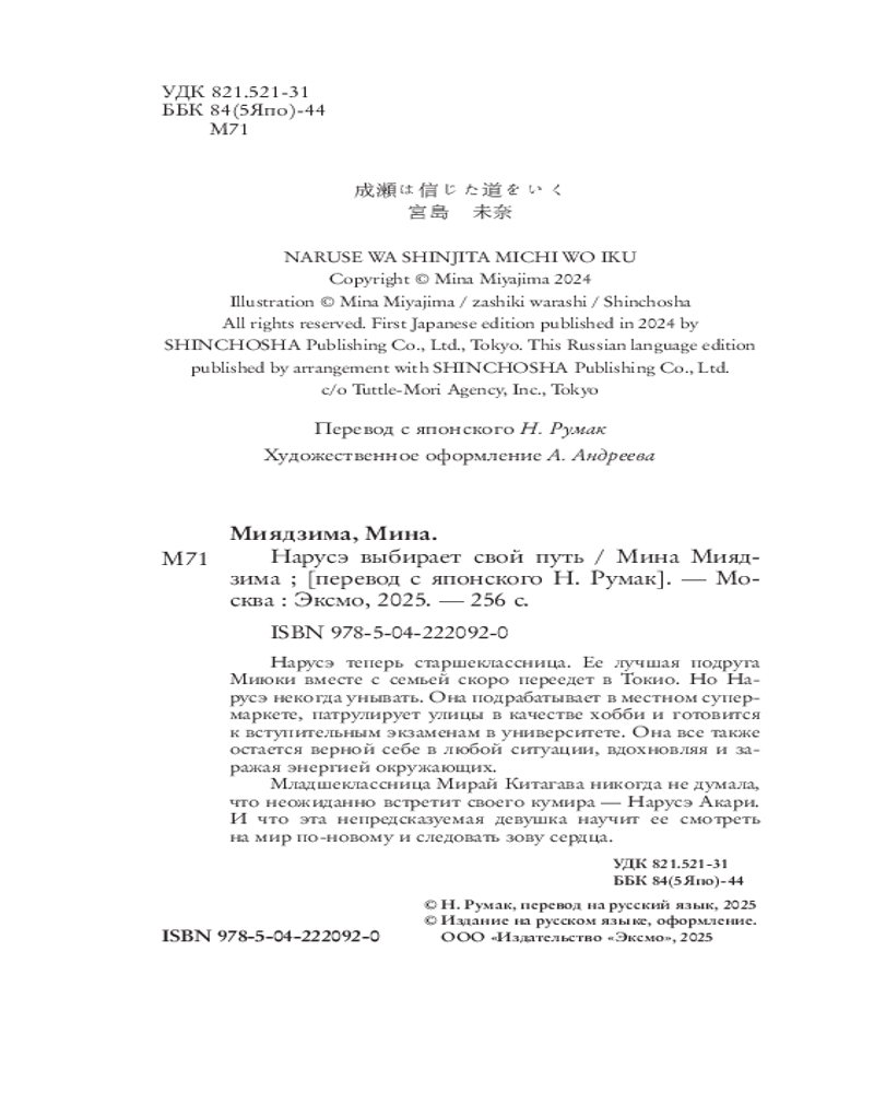 💳 Оплатить за товар можно при получении 🇰🇿 Есть бесплатная доставка по Казахстану 🎁 Копите бонусы с каждой покупки Серия: Young Adult. Японский бестселлер Нарусэ теперь старшеклассница. Ее лучшая подруга Миюки вместе с семьей скоро переедет в Токио. Но Нарусэ некогда унывать. Она подрабатывает в местном супермаркете, патрулирует улицы в качестве хобби и готовится к вступительным экзаменам в университете. Она все так же остается верной себе в любой ситуации, вдохновляя и заражая энергией окружающих. |
